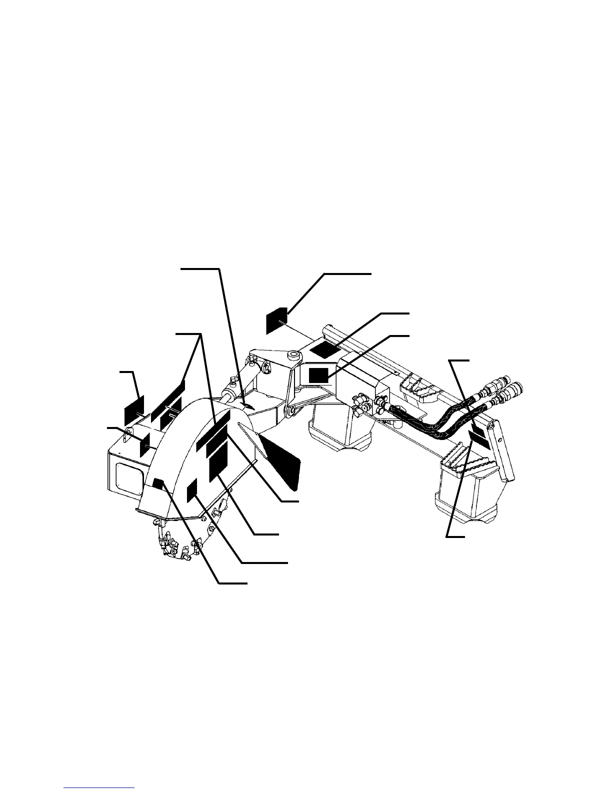 The diagram on this page shows the location of the decals used on your attachment.