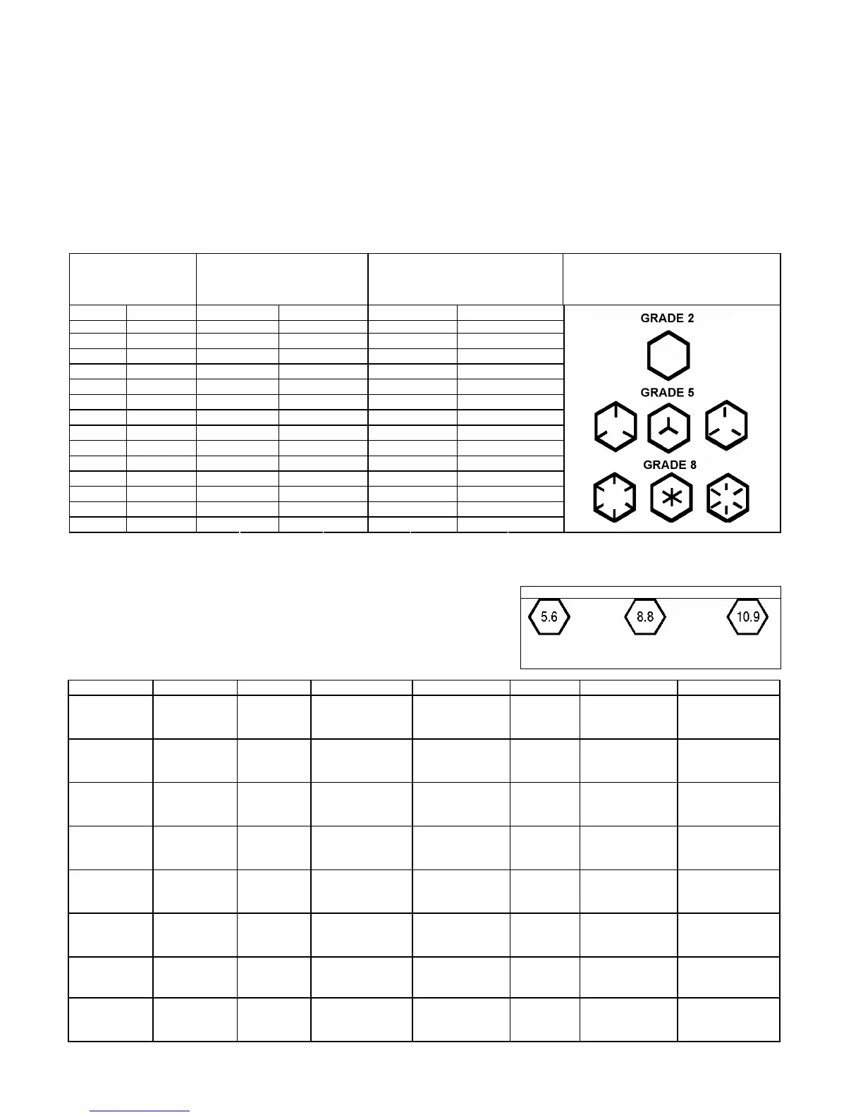 Use the following charts when determining bolt torque specifications when special torques are not given.