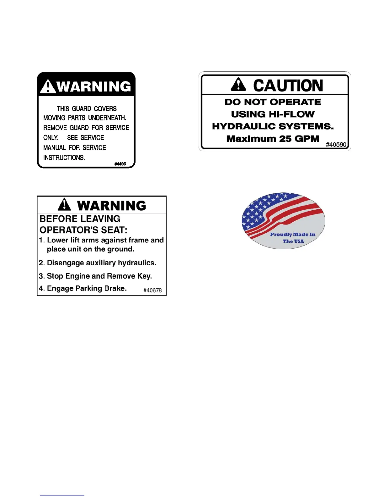 WARNING! BEFORE LEAVING OPERATOR'S SEAT