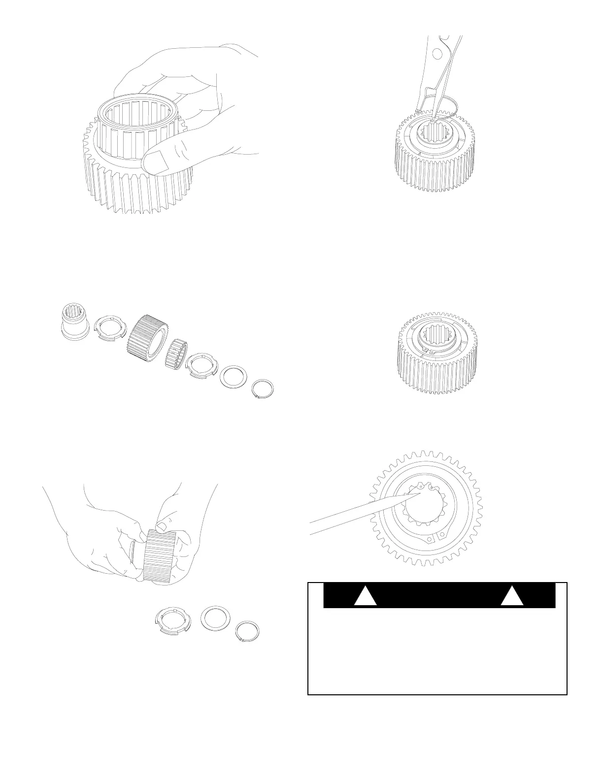 on the inner race. Be sure the snap ring is seated in