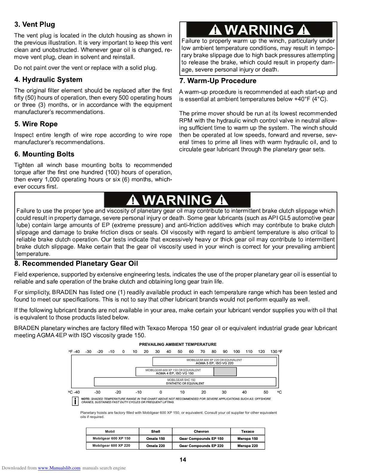 Planetary hoists are factory filled with Mobilgear 600 XP 150, or equivalent. Consult your oil supplier for other equivalent