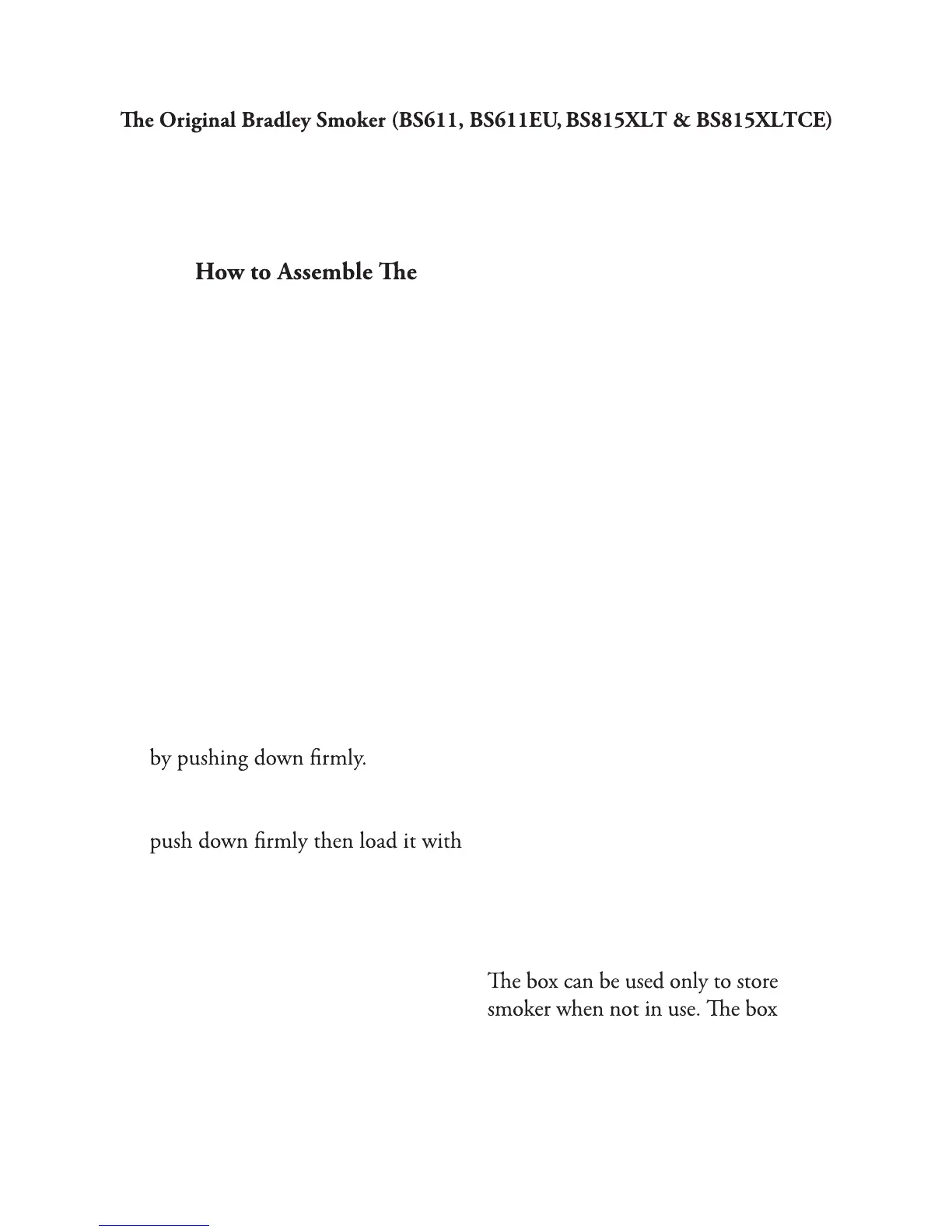 For the 4 and 6-Rack Digital Smokers, please refer to the corresponding sections.