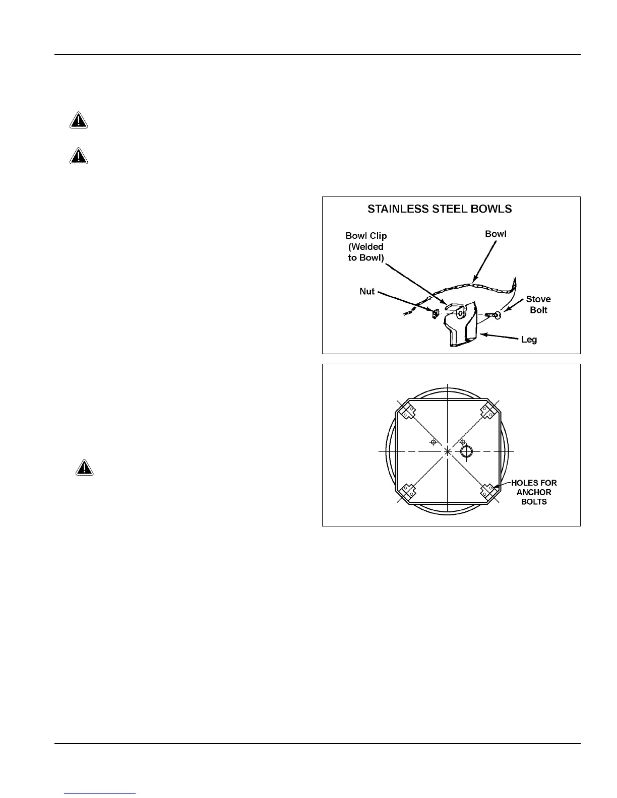 WARNING: USE SUITABLE LIFTING EQUIPMENT TO POSITION THE BOWL AND