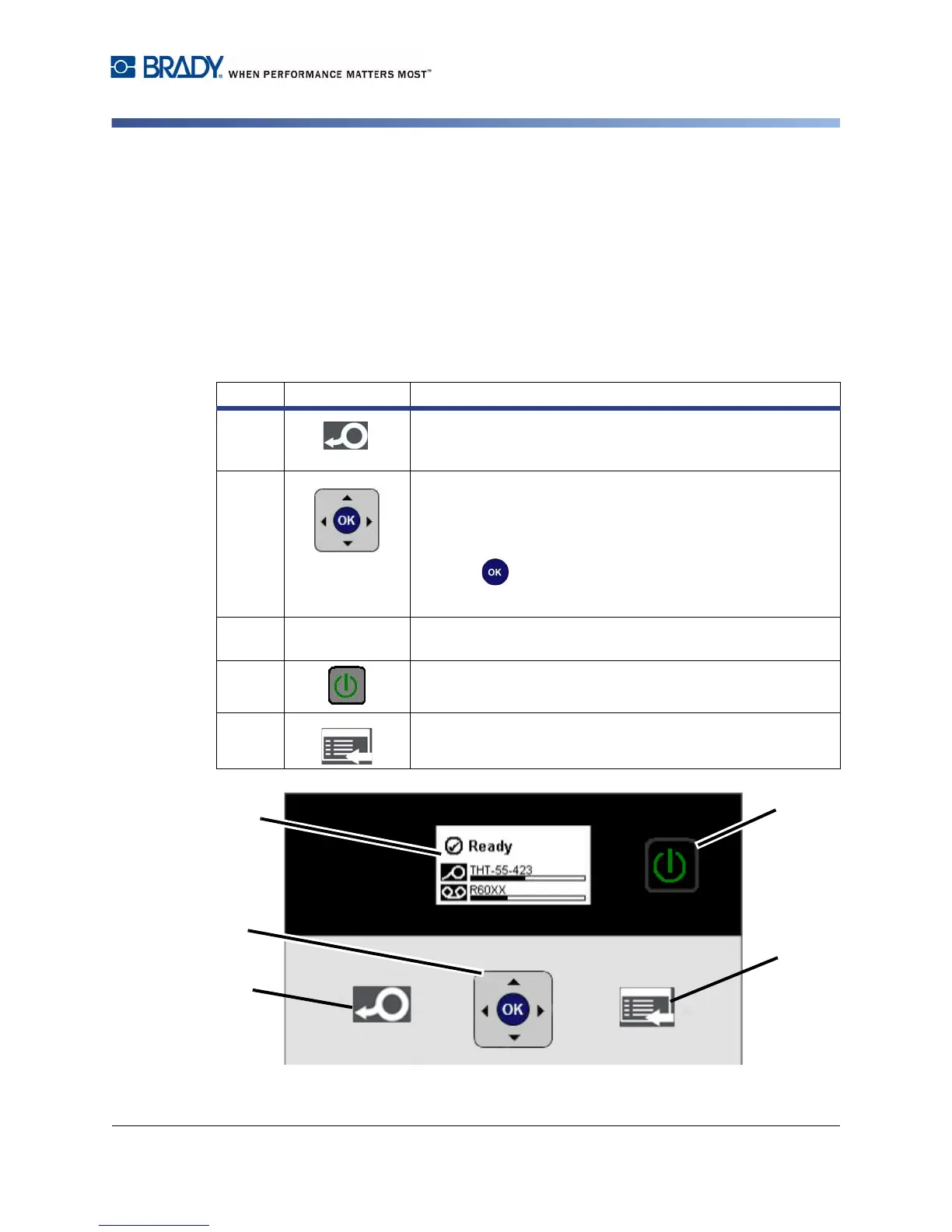 The user interface (UI) contains the keypad and buttons for using the printer. The
