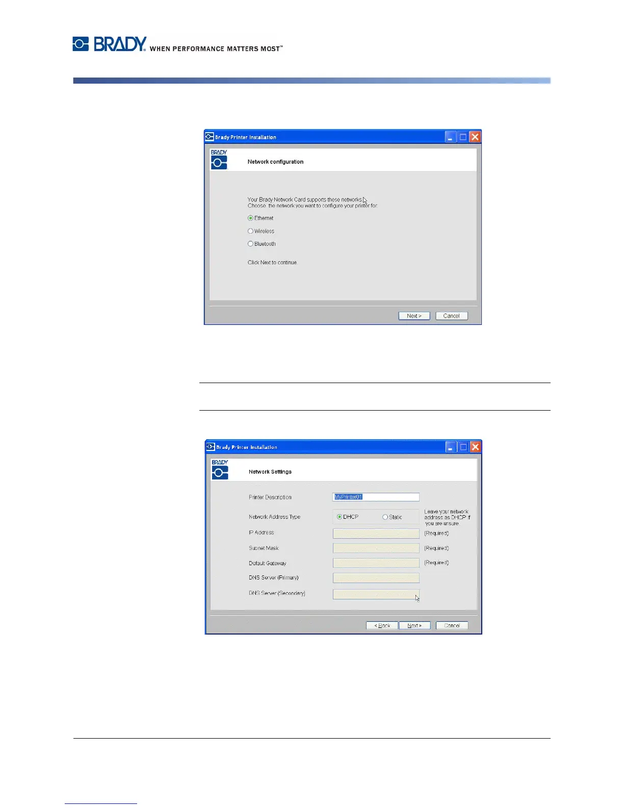 Installing a Brady Network Card