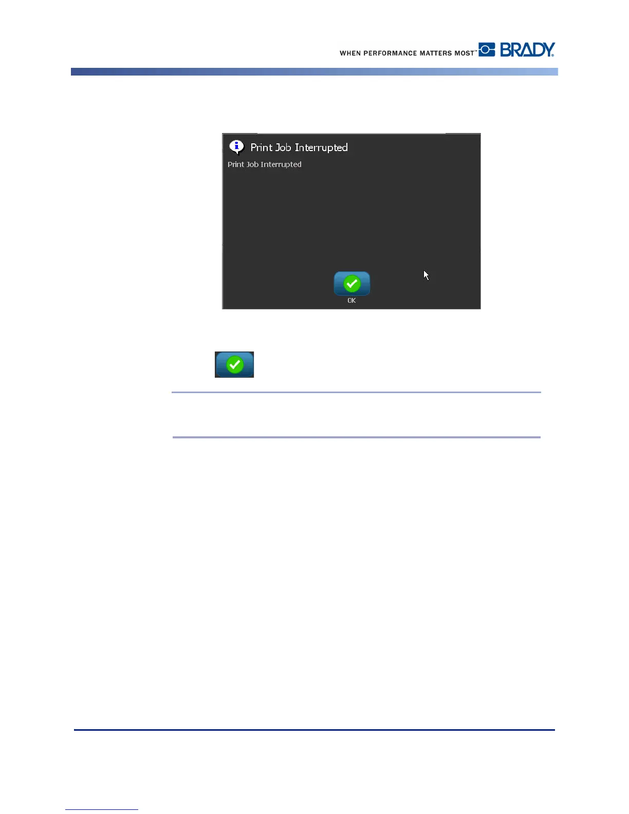 The printer immediately stops printing, displays a print job interrupted message, and cuts the