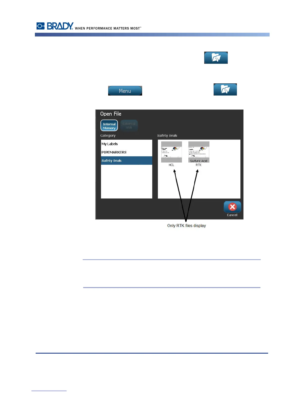 3. From the label type’s control panel, touch Open Saved File .