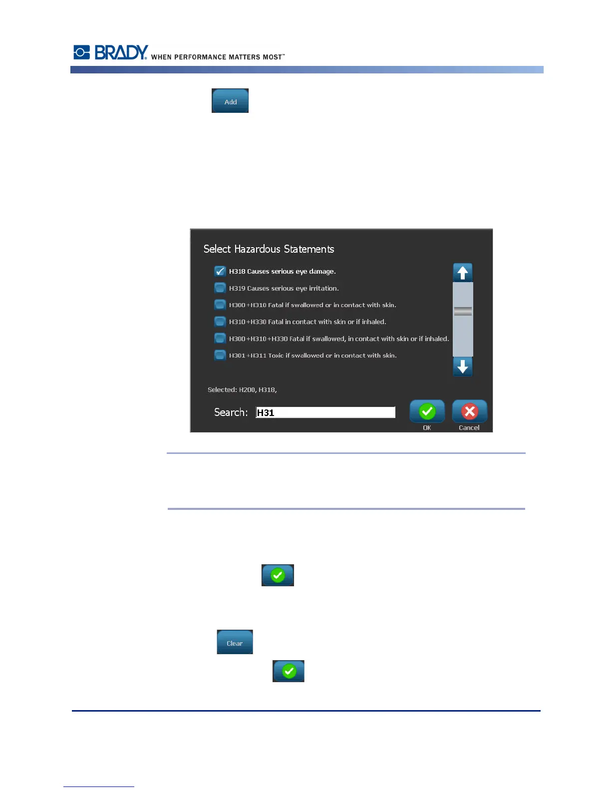 12. Touch Add for the statement you want to add (Hazardous, Precautionary,
