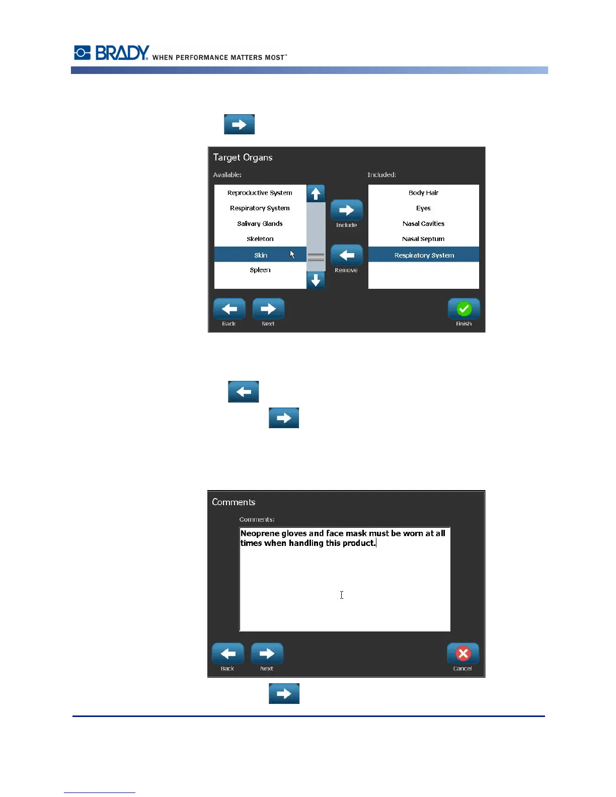 20. On the Target Organs screen, in the Available: list, touch any body organs that could be