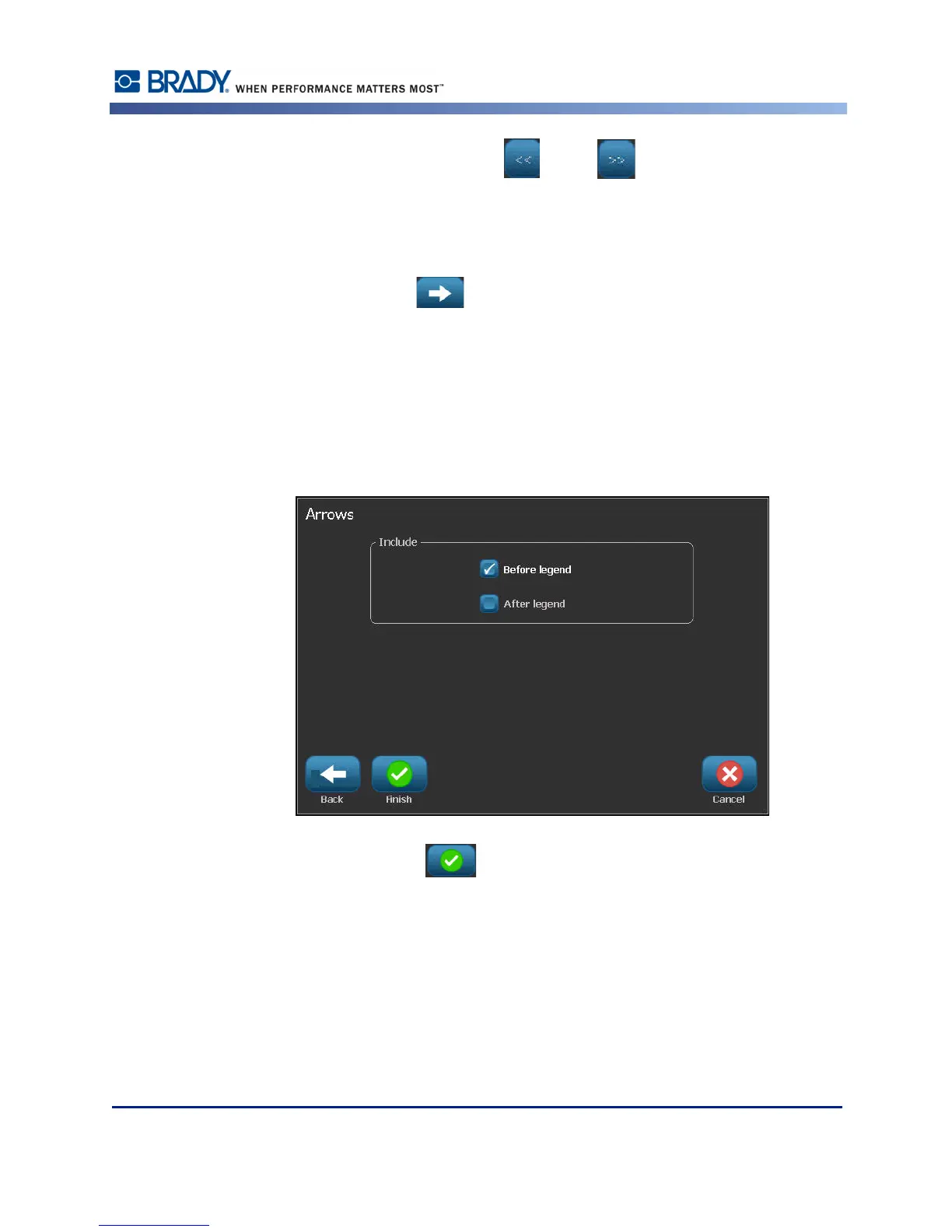 16. Touch the option box designating where you want the arrows to display - Before Legend