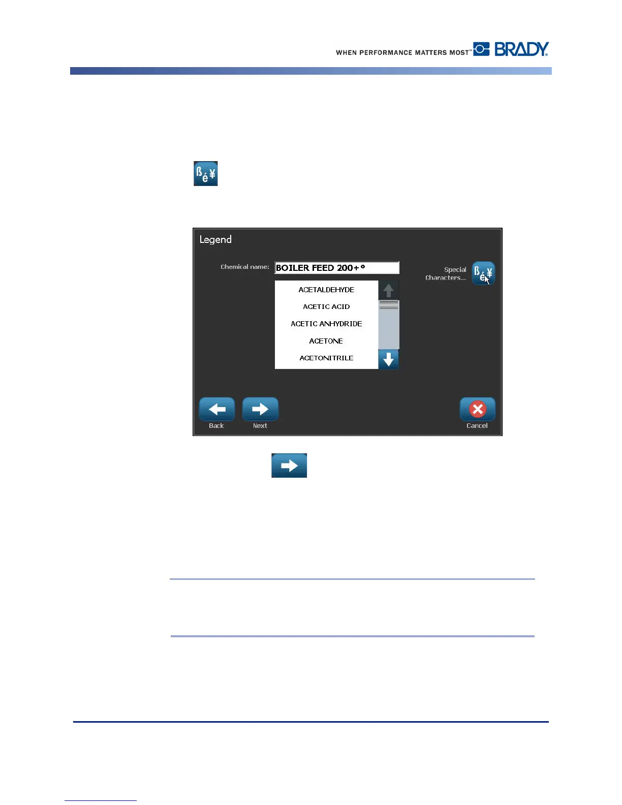 8. To enter special characters, touch the Chemical name: field where the special characters