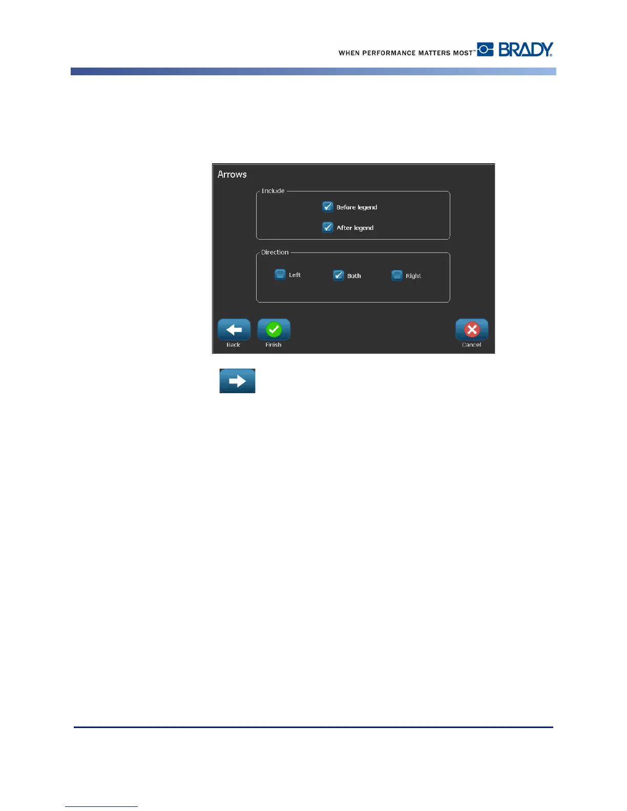 19. Touch the option box designating where you want the arrows to display - Before Legend