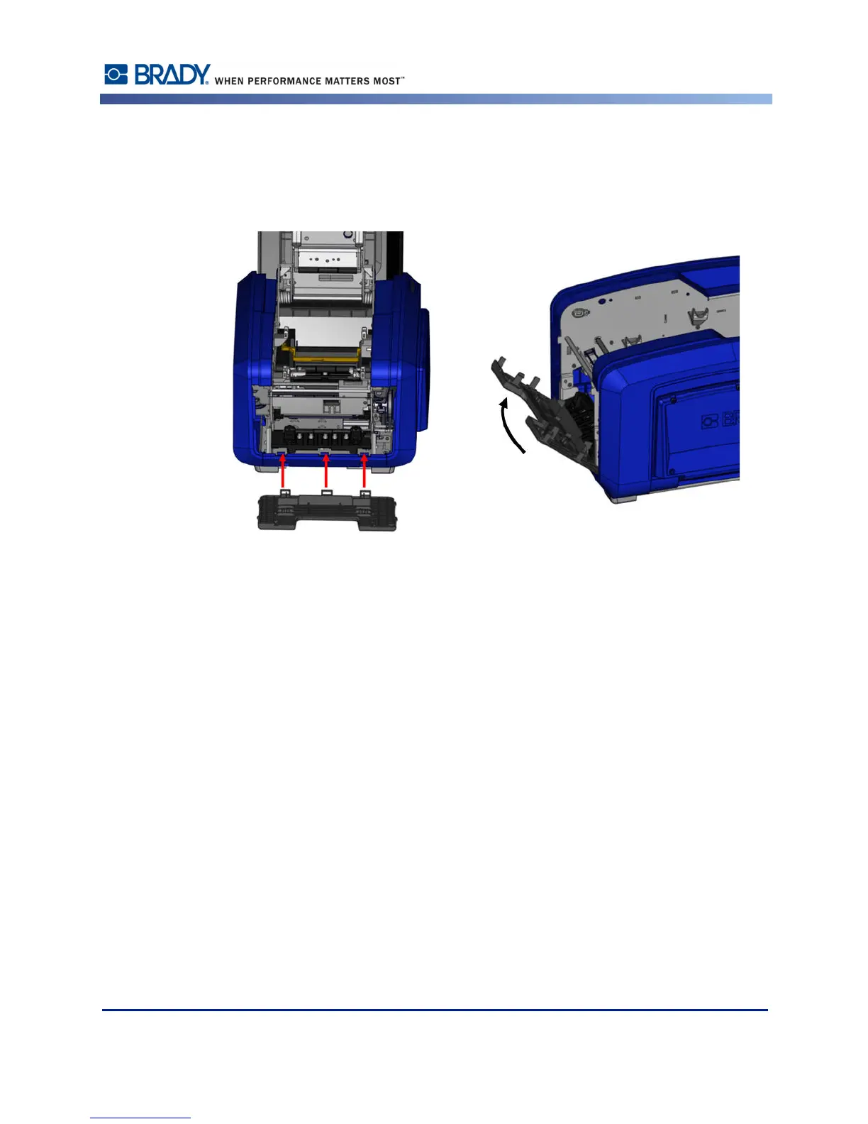 8. Hook the three loops on the bottom of the panel over the blue tabs on the printer, then push
