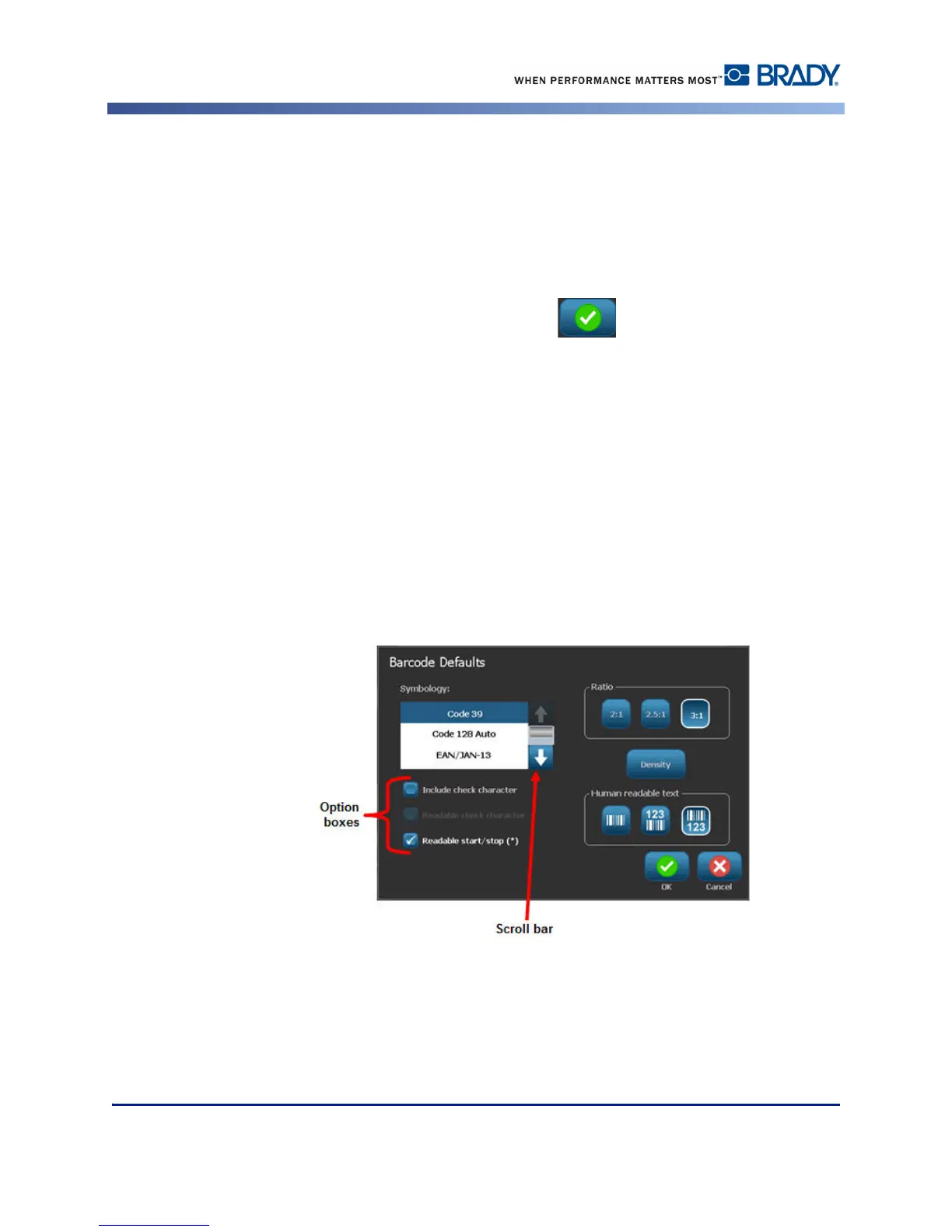 5. To accept options and data entered, touch OK .