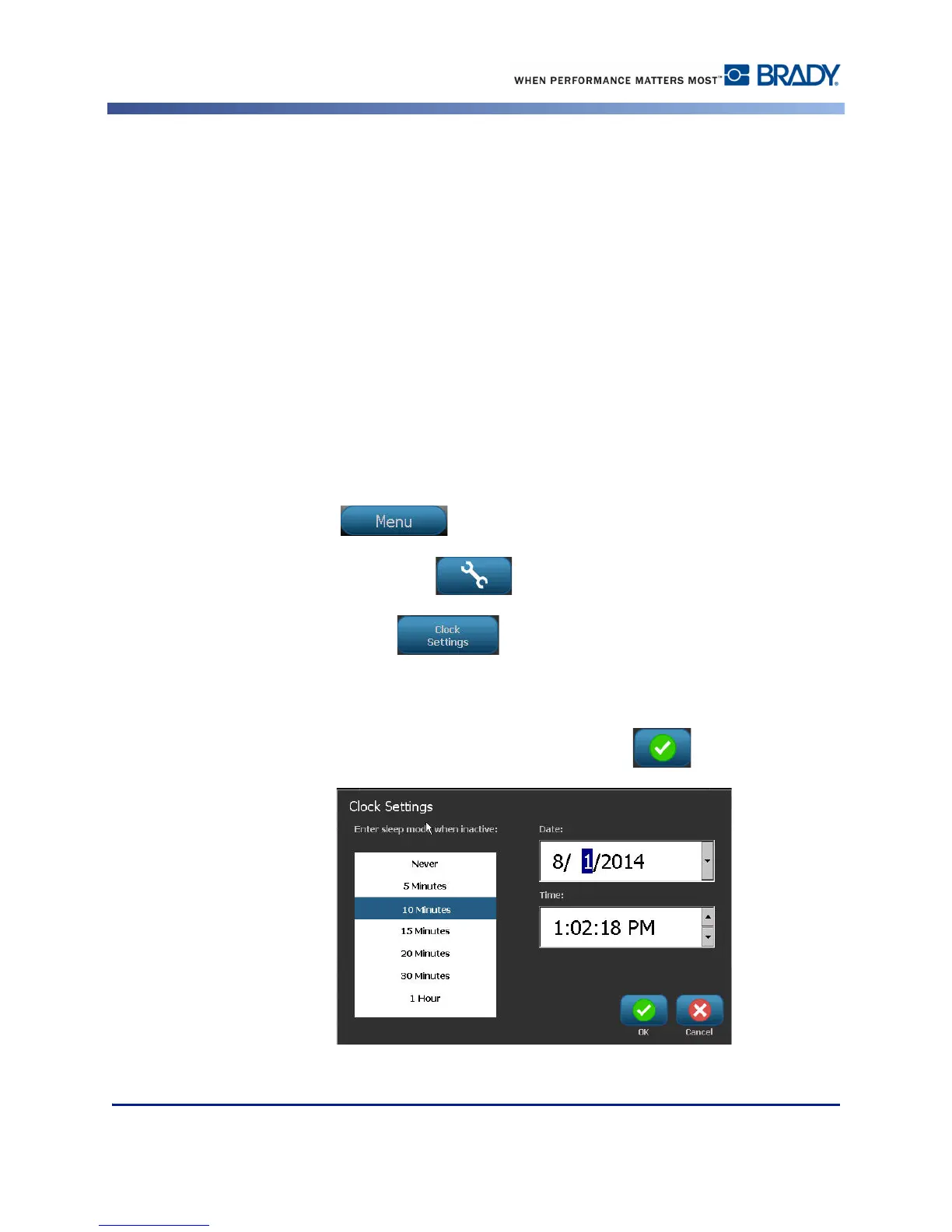 Time options upon initial start-up of the printer. To access Clock Settings: