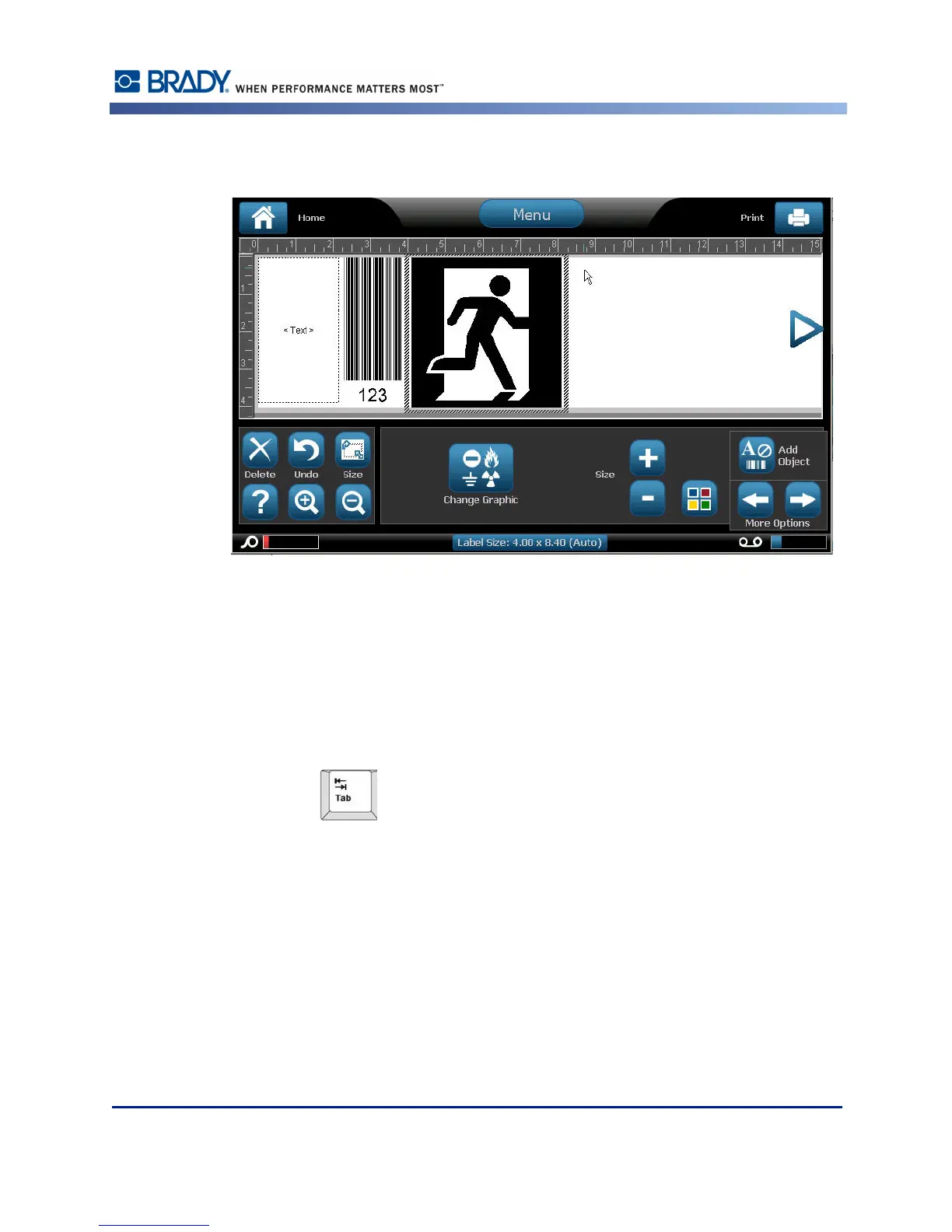 1. On the label (Editor screen), touch the object element you want to work with.