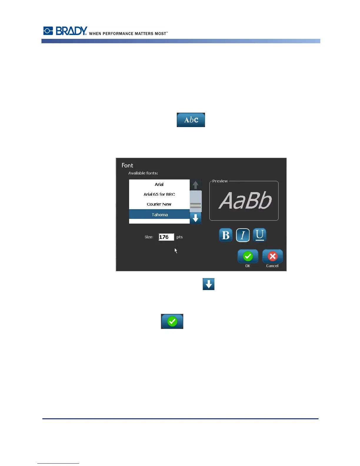 4. To view more fonts, touch the down arrow in the scroll box to the right of the