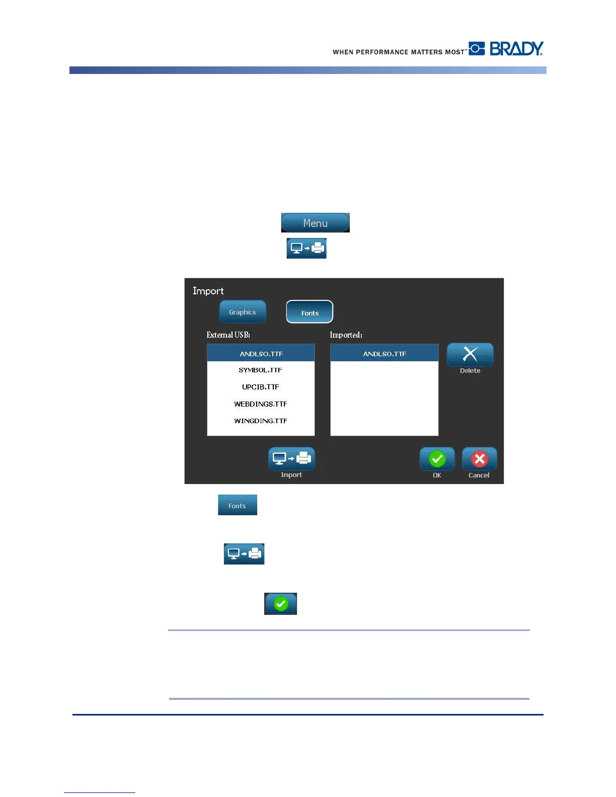 fonts can be imported. A USB flash drive must be used to import fonts to the printer.