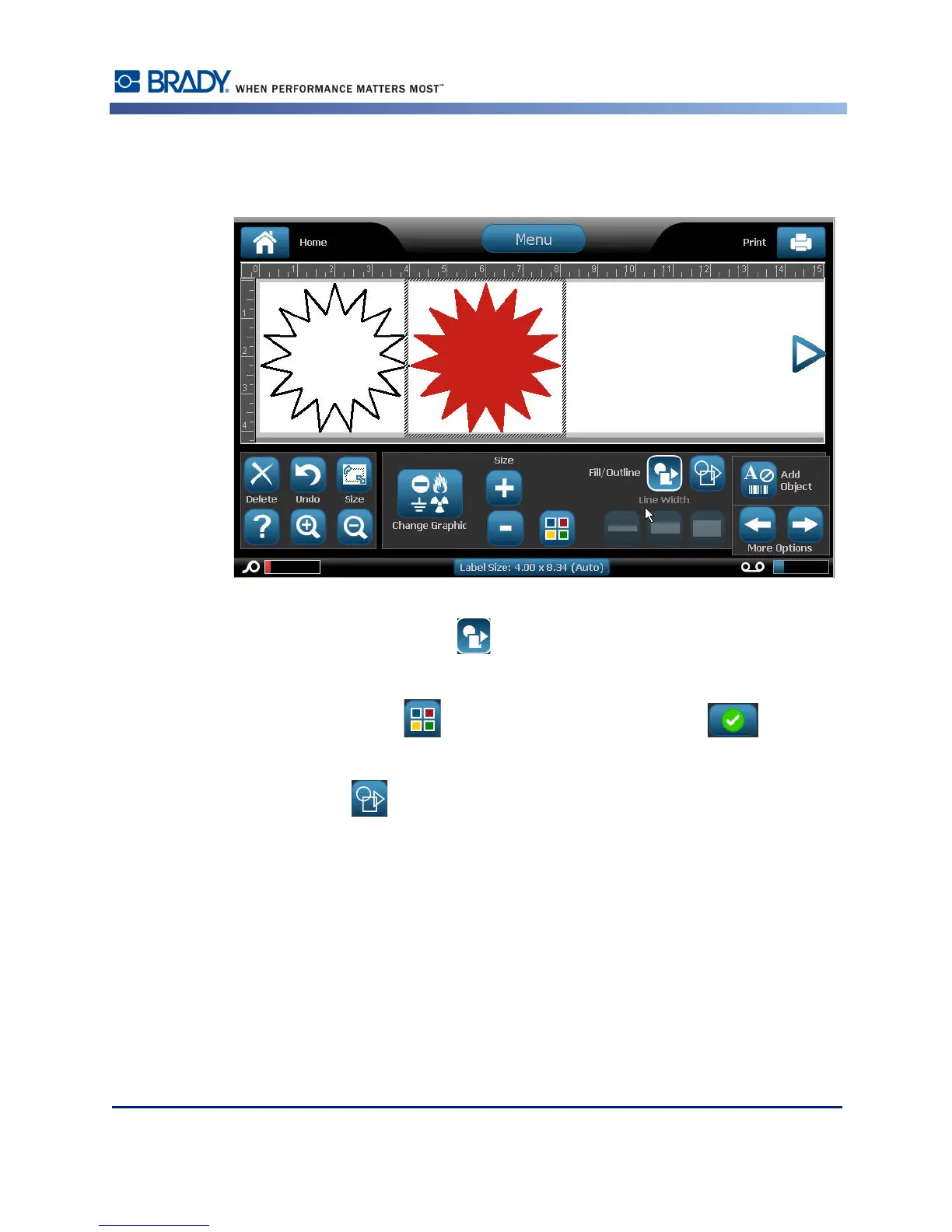 1. In the control panel, touch Fill .