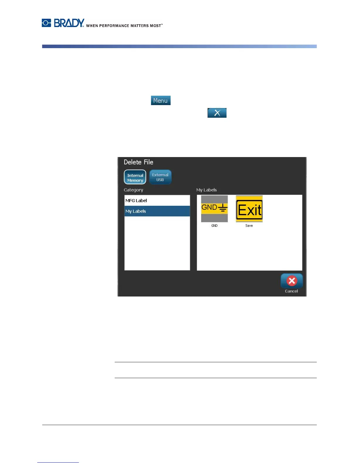 5. Touch the label file you want deleted.