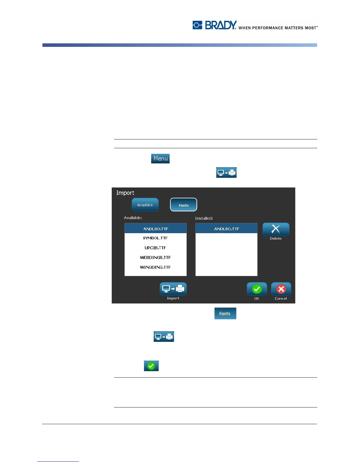 Note: If there is not enough space available to store the imported font(s), you