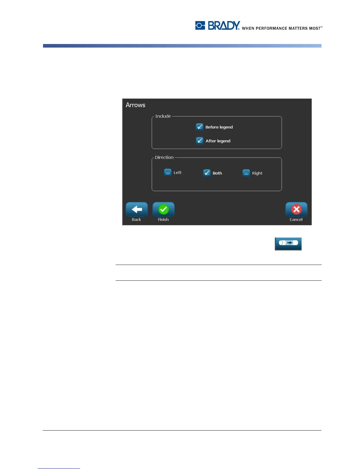 7. In the Arrows dialog, choose from the following options: