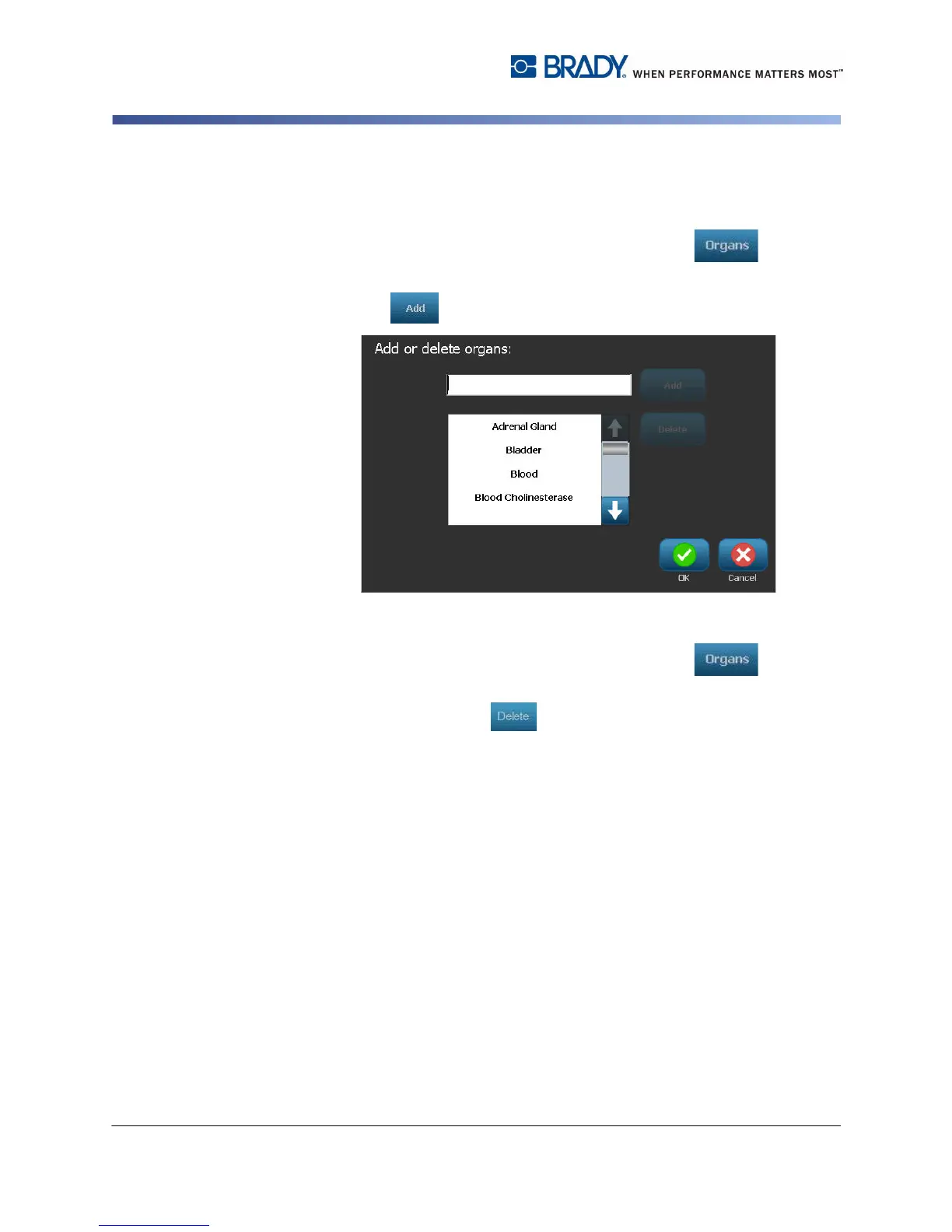 2. In the Add or delete organs dialog, type the new organ you want to include.