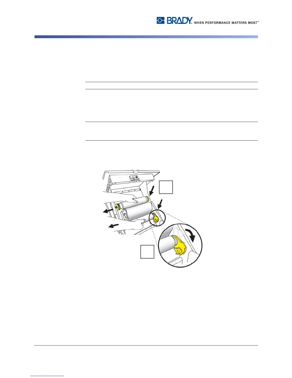 2. Place ribbon roll inserts over yellow drive cones on left, then right sides [2].