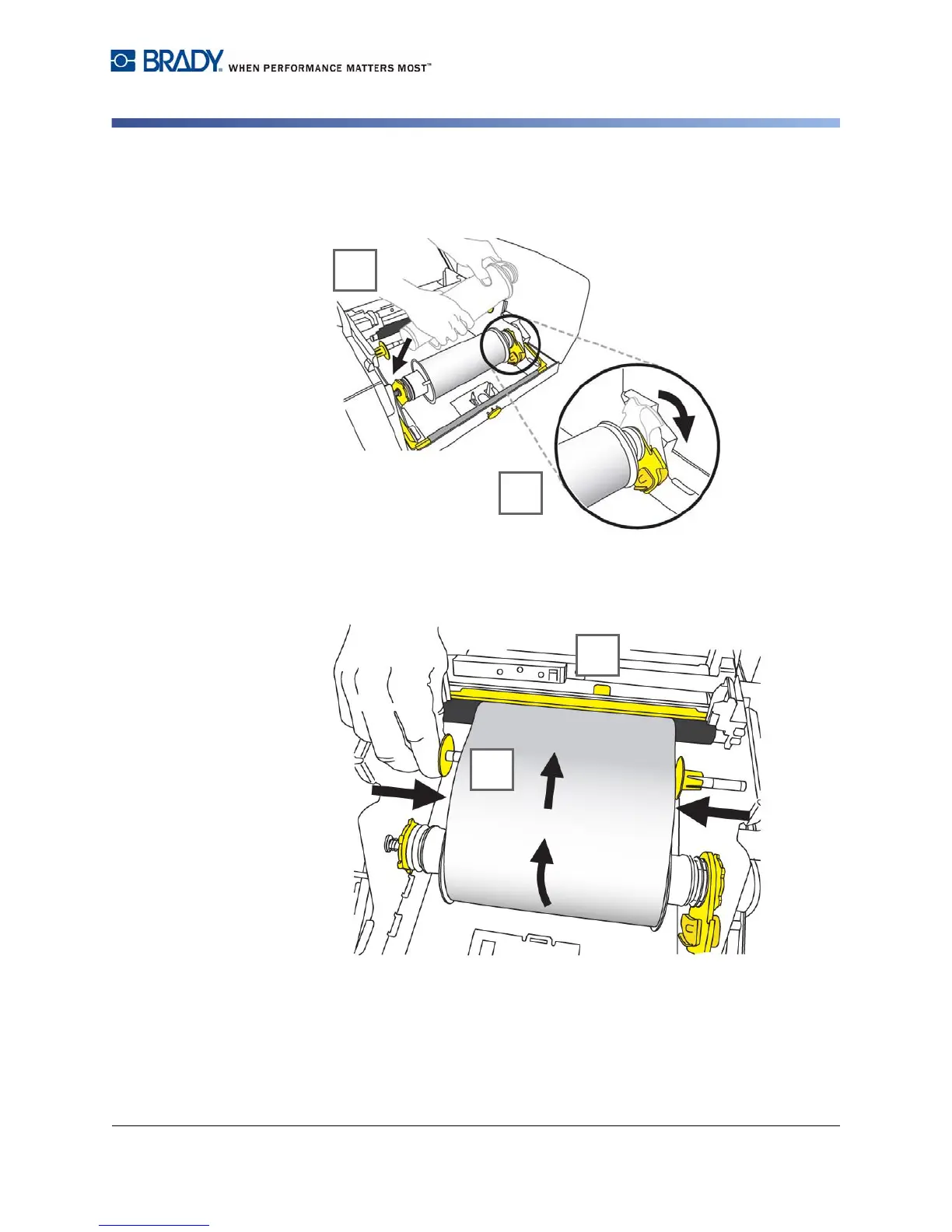 4. Place left side of media roll insert over yellow drive cone, pull toward left, then