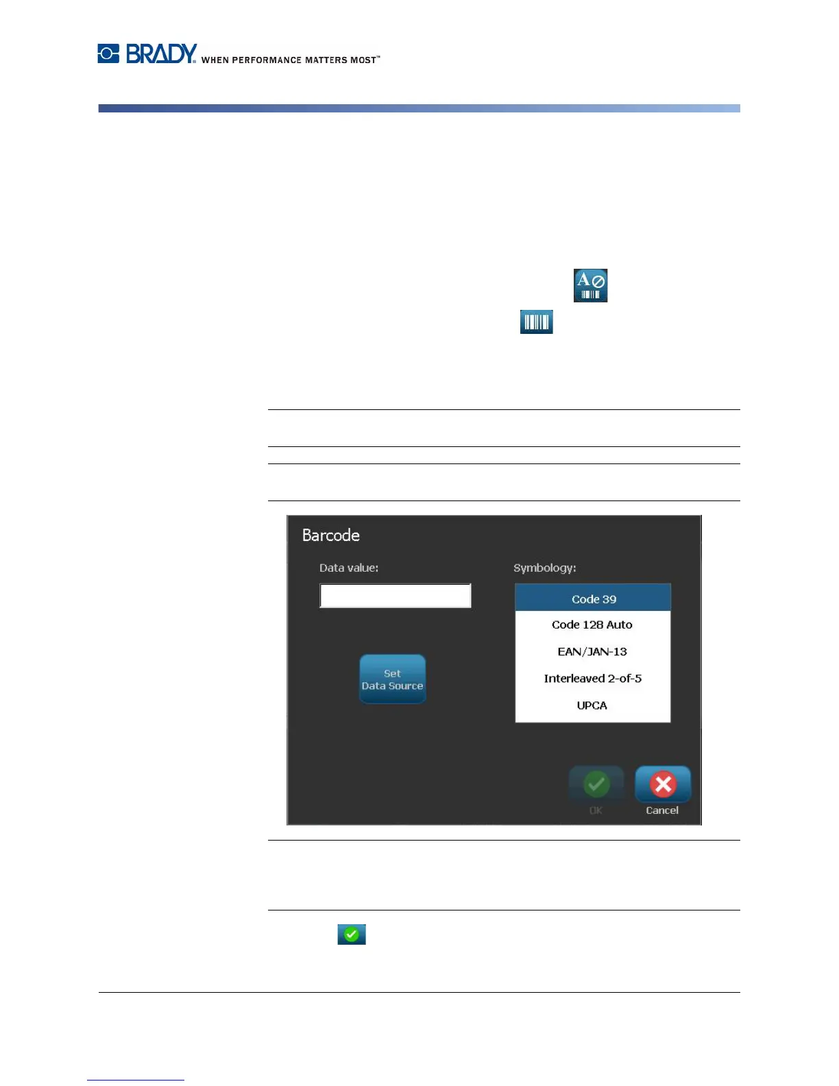 a. Select a barcode Symbology.