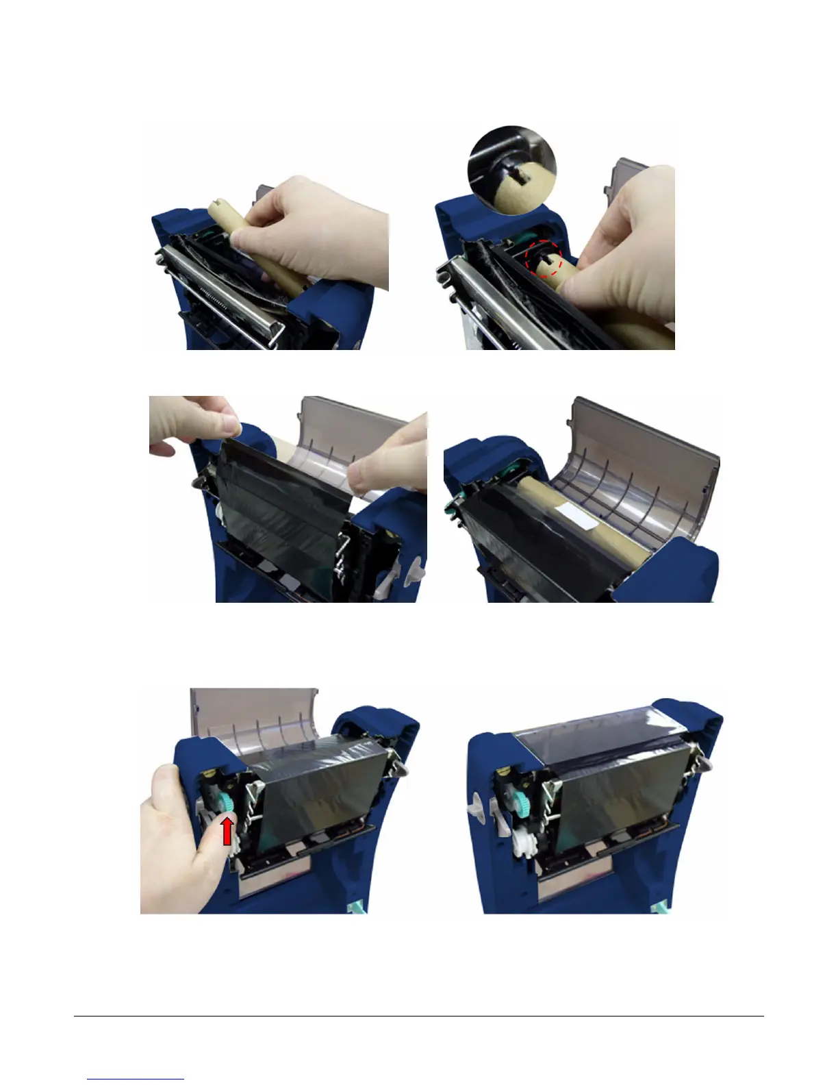 black section of the ribbon covers the print head. Close the ribbon access cover and the
