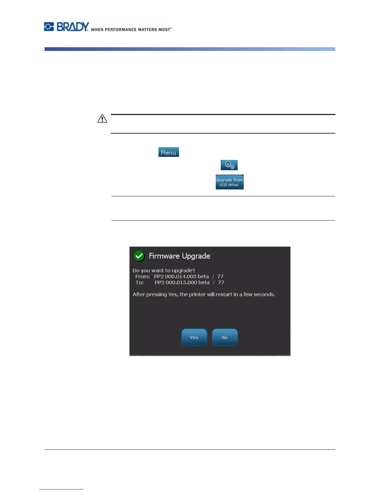 5. At the prompt to continue with the upgrade, select Yes. The printer will go into