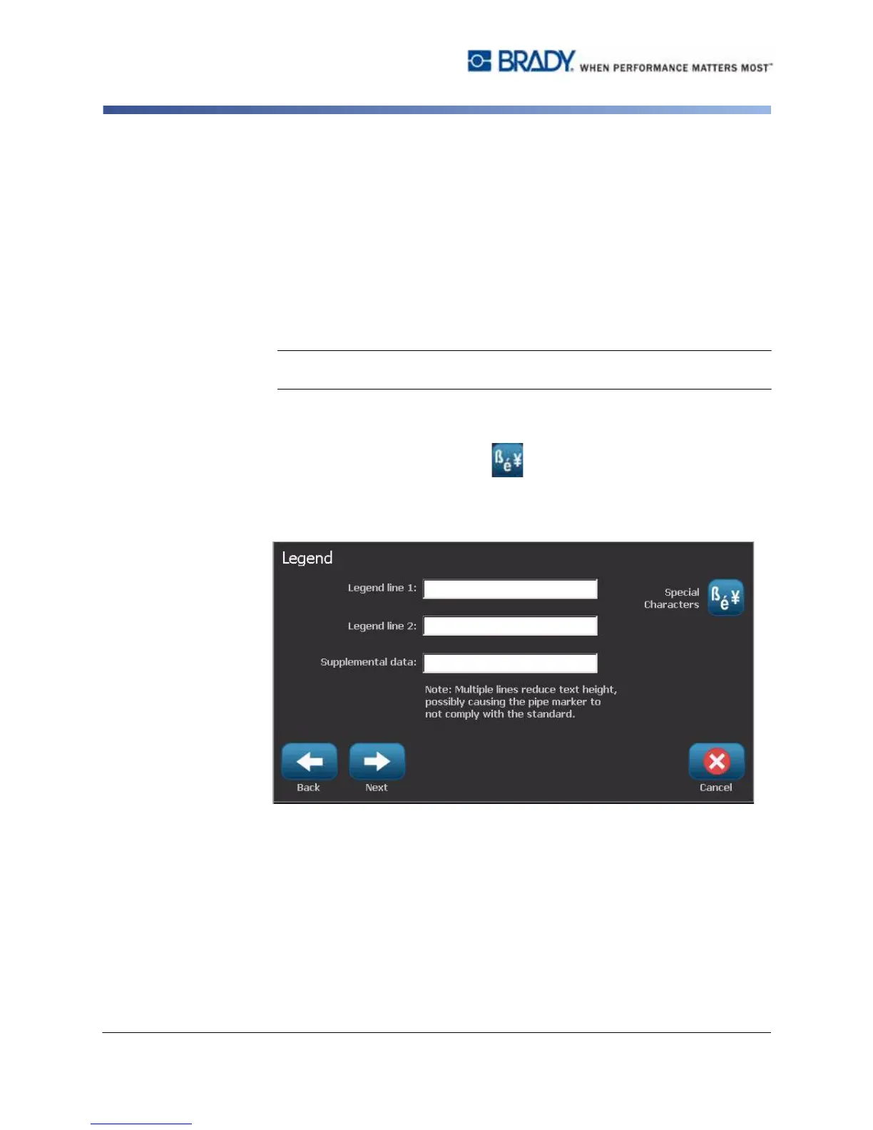 3. In the Legend dialog, enter the text you want to appear on the label, then