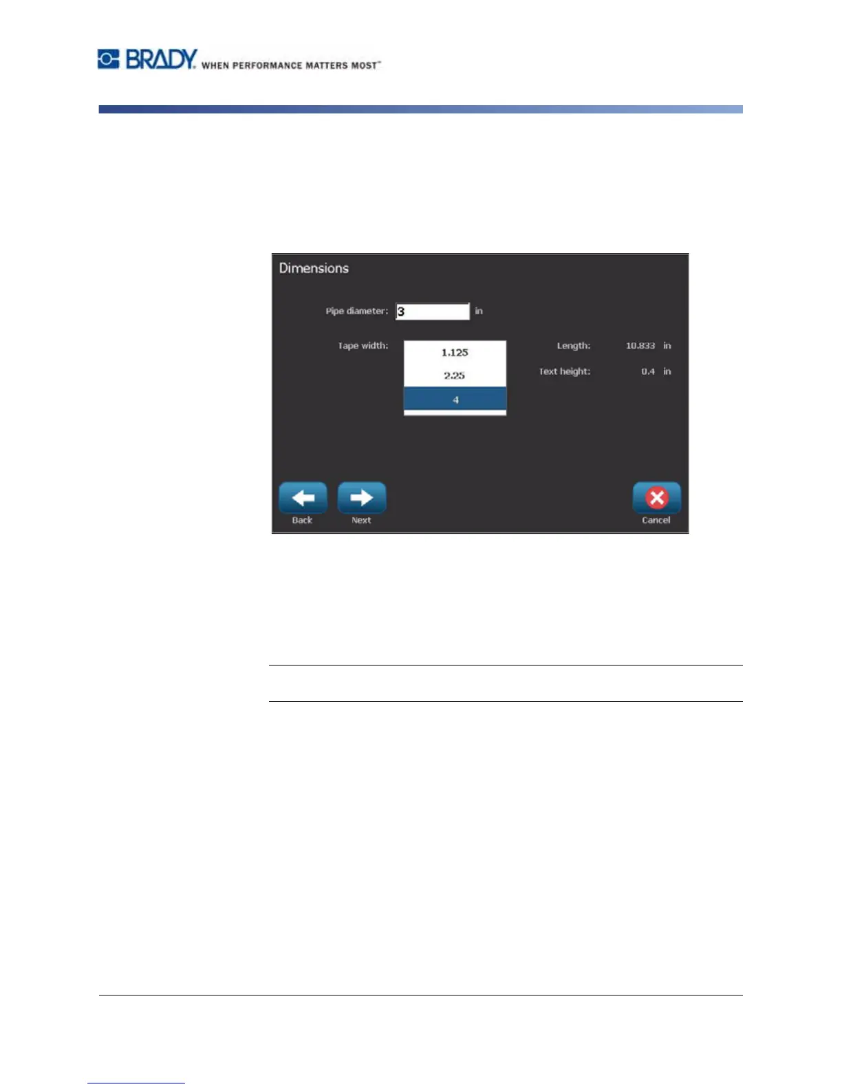 1. In the Dimensions dialog, enter the pipe diameter.