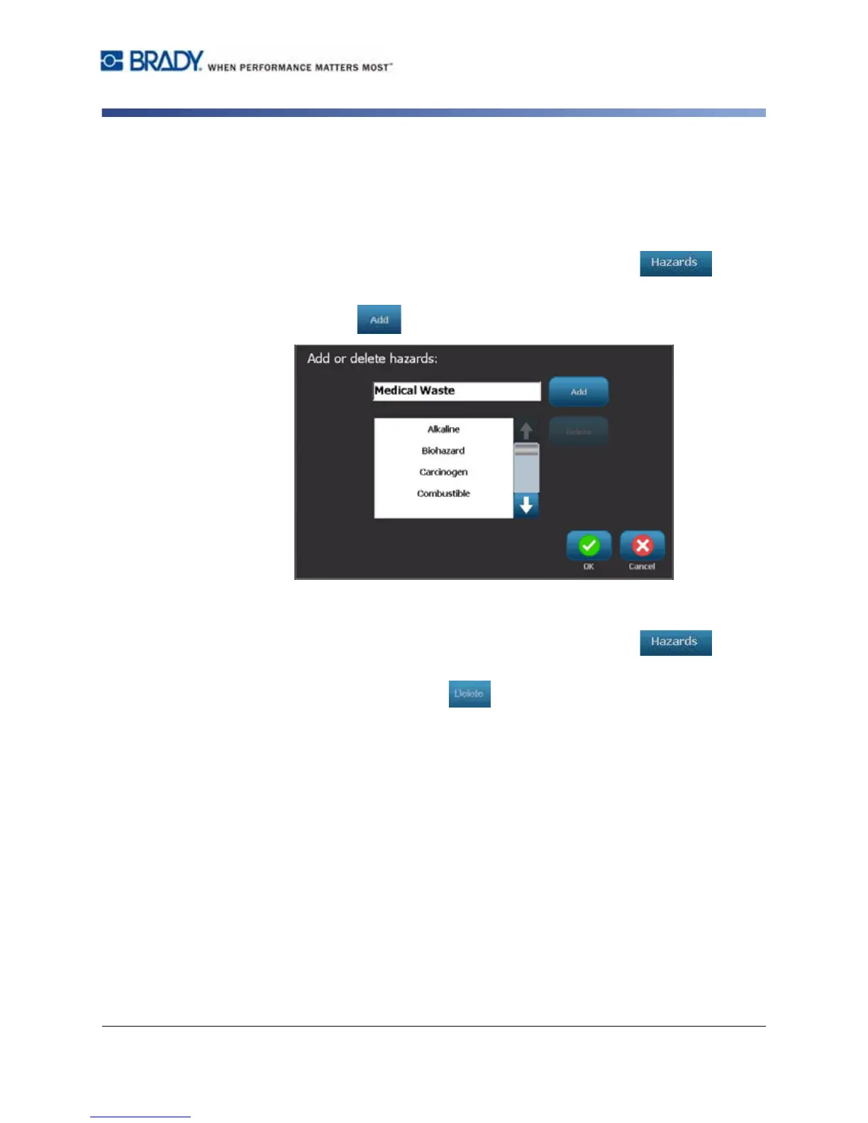 2. In the Add or delete hazards dialog, type the new hazard you want to include.