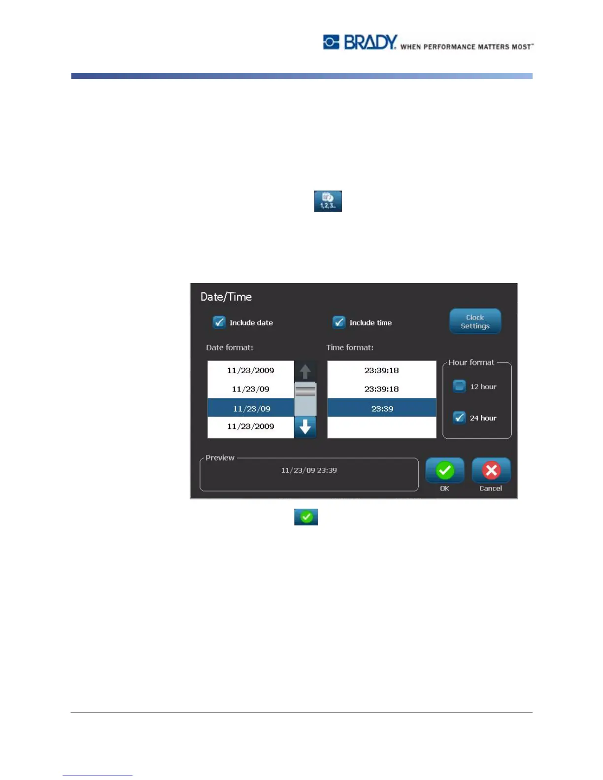 4. In the Date/Time dialog box, choose the settings you want for the object.