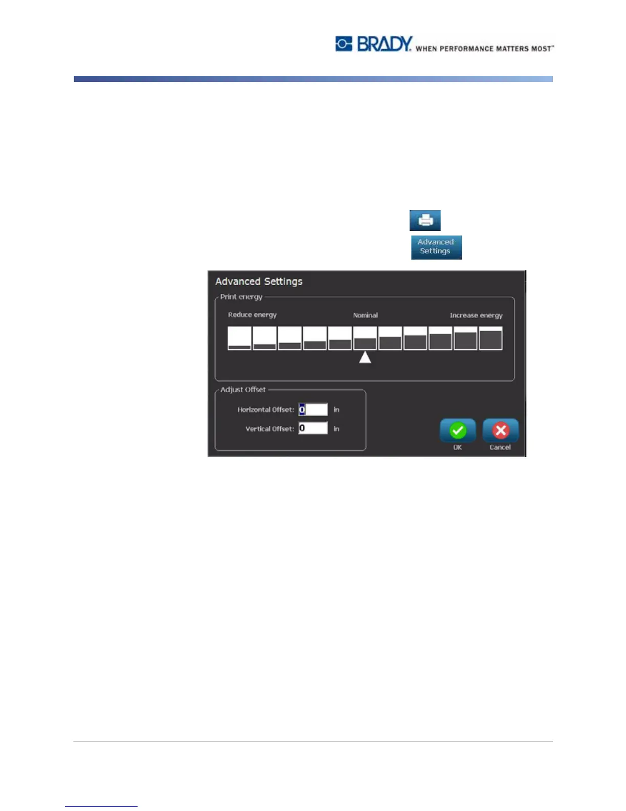 To adjust the print offset: