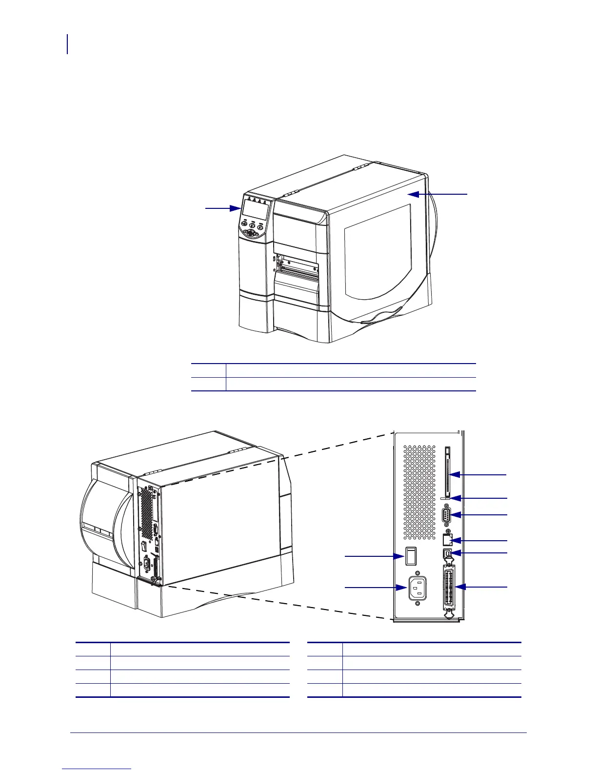 Figure 2 and Figure 3 show the components and connections on the outside of the printer.
