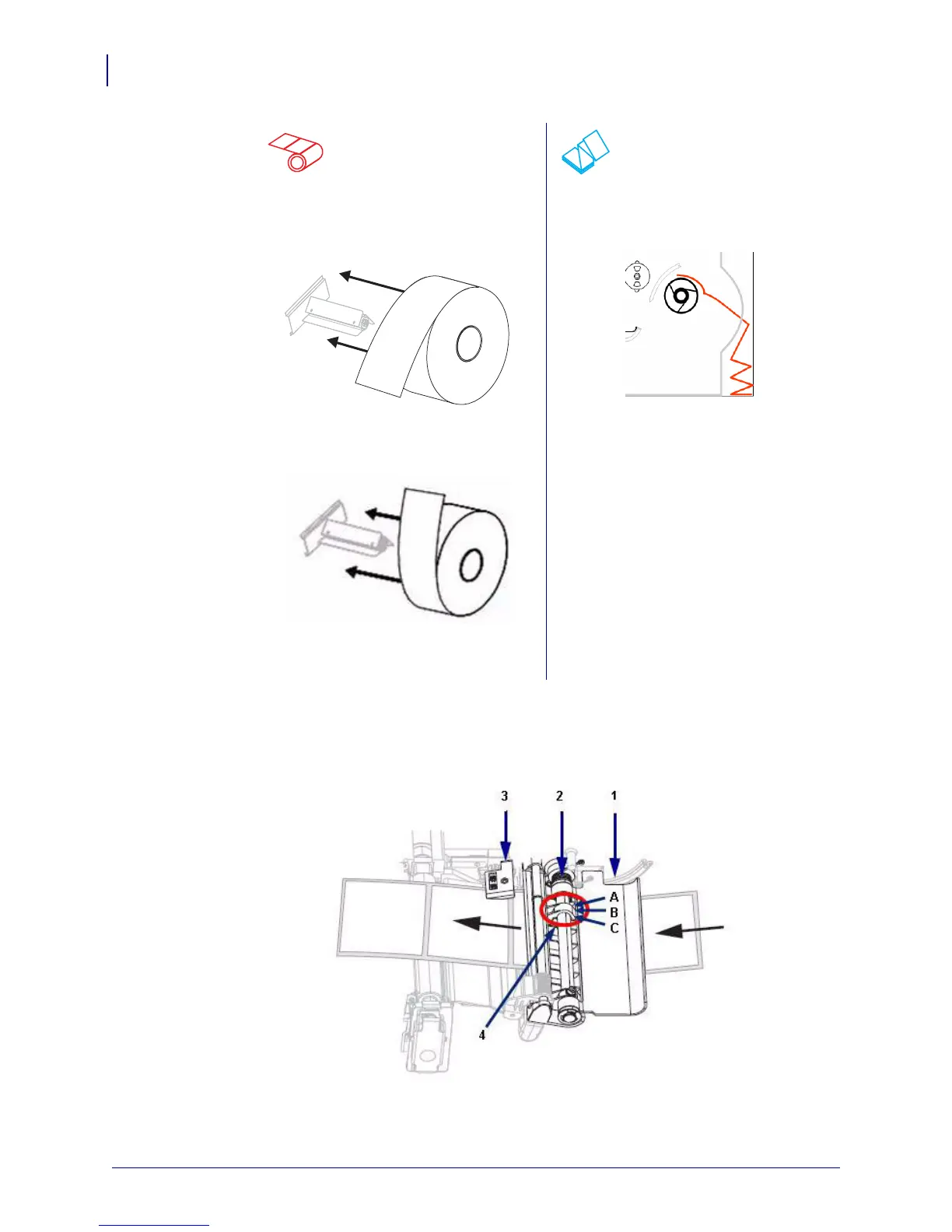 4. Feed the media under the dancer assembly (1), the upper media sensor (2), the ribbon