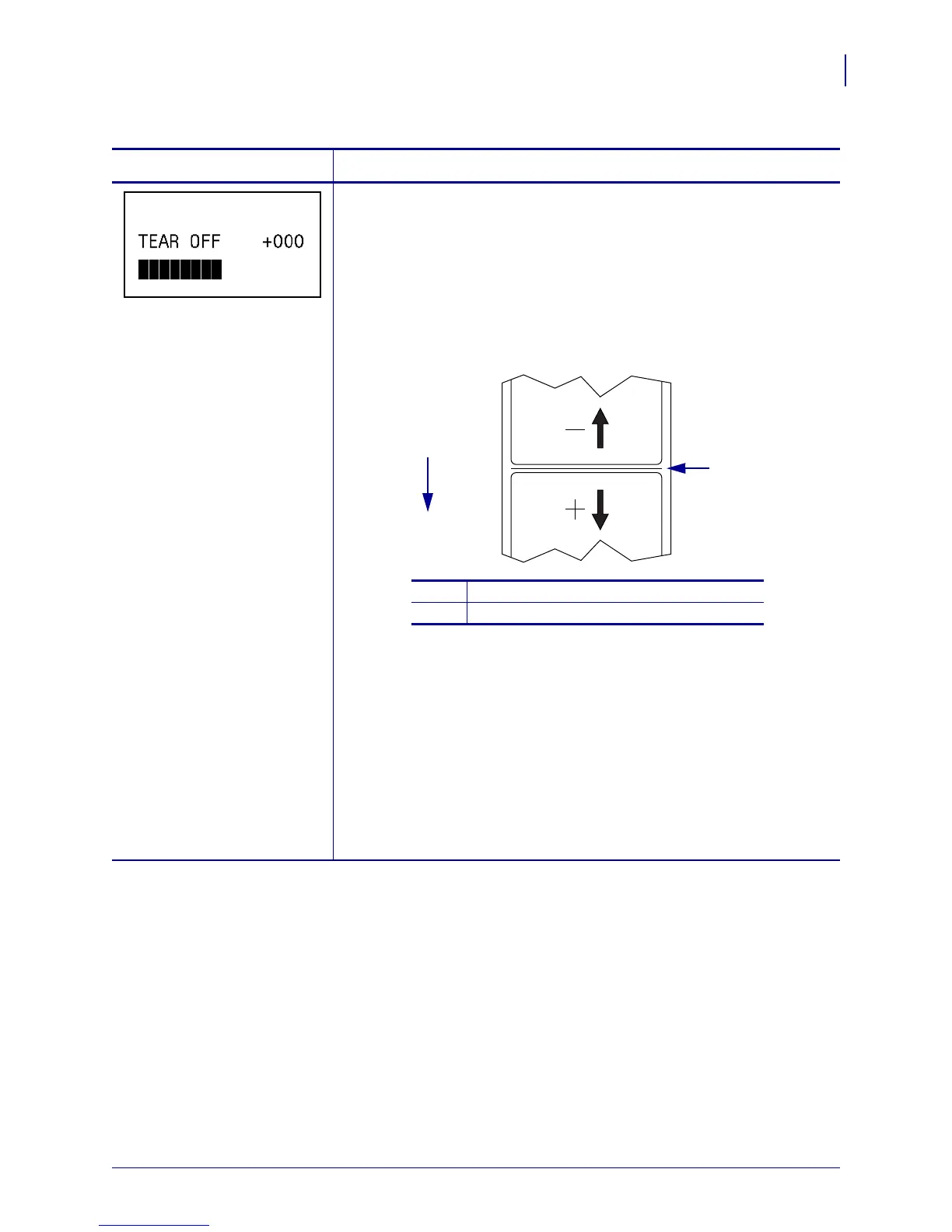 MINUS (-) to decrease the value. Each press adjusts the tear-off