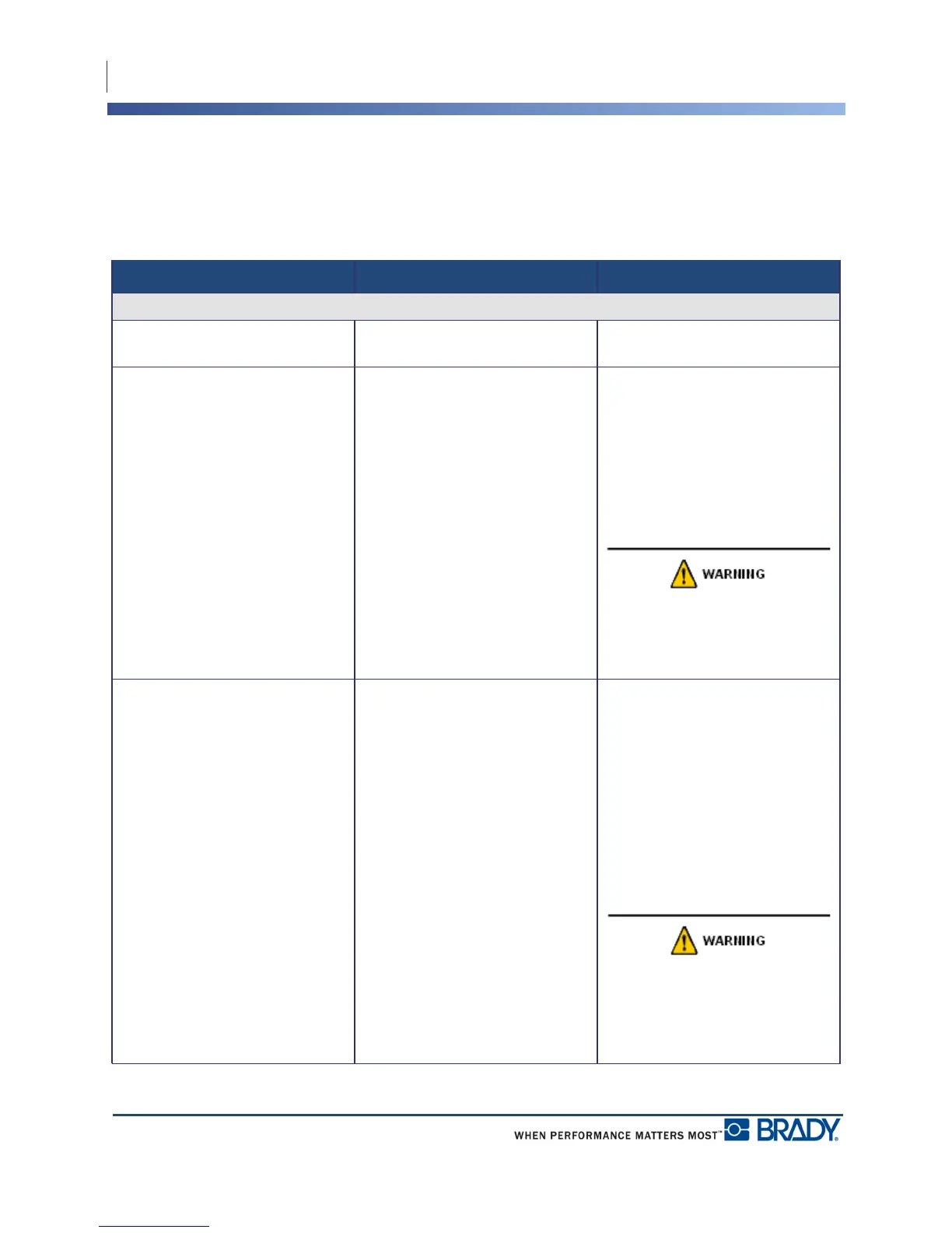 work, contact Brady’s Technical Support Group (see page 69).