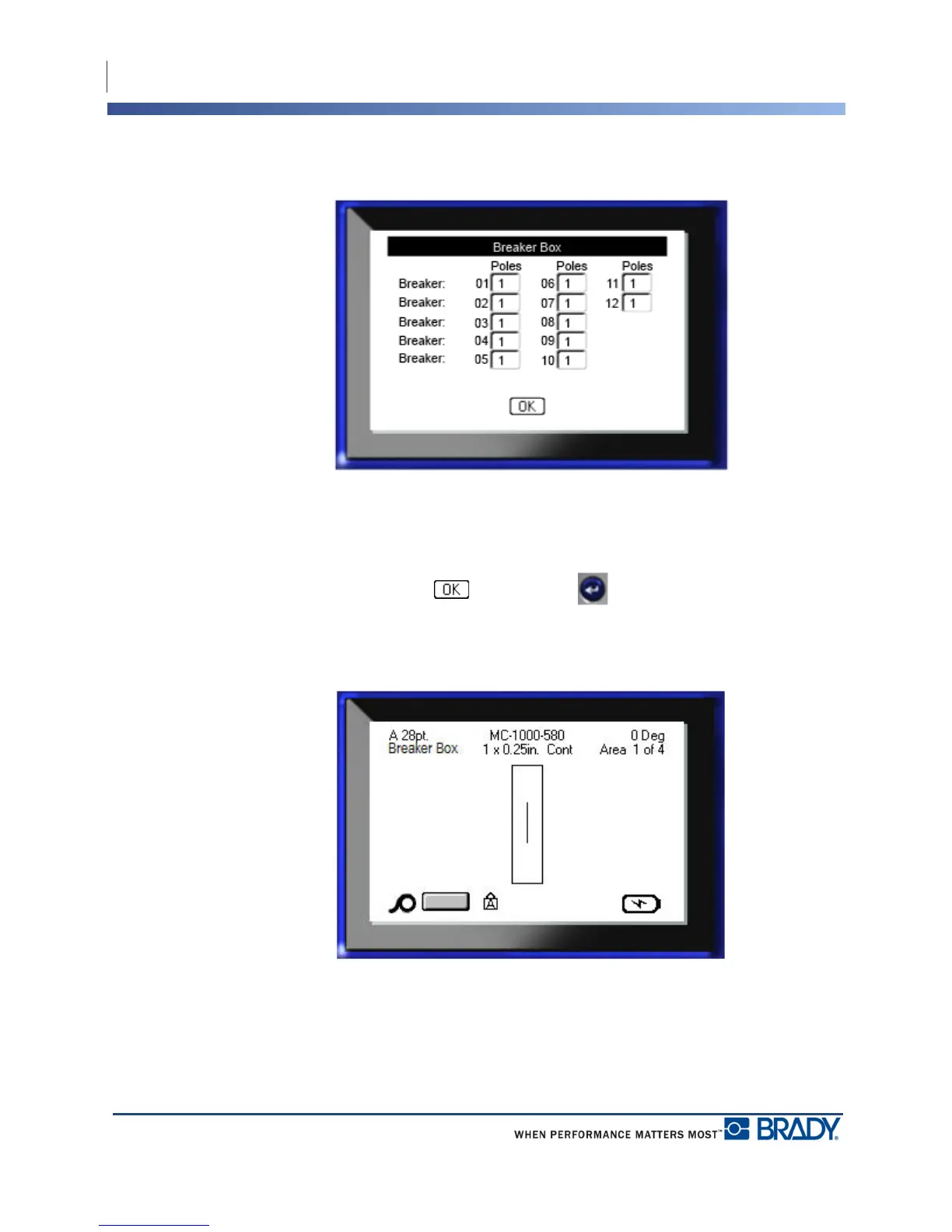 data for each breaker, using Next Area or Prev Area to move to the different areas.