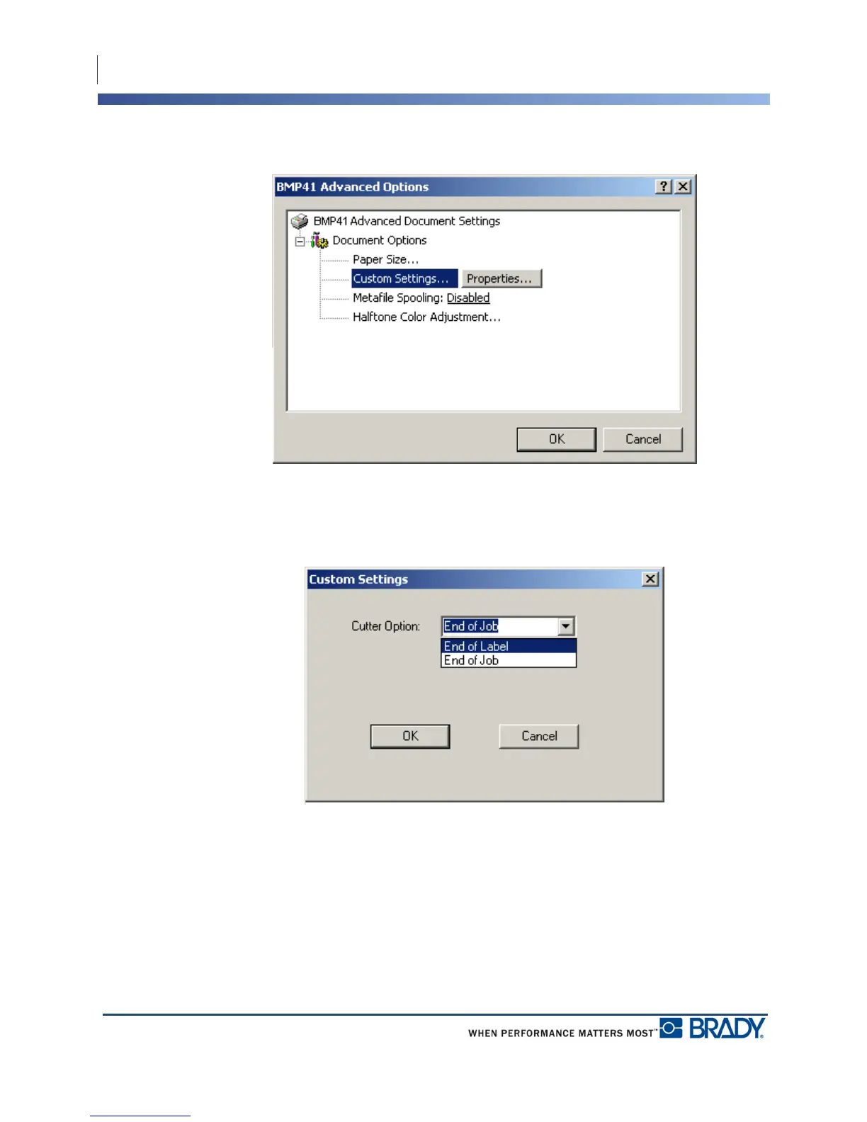 5. On the Custom Settings screen, click the down arrow in Cutter Option field and select if