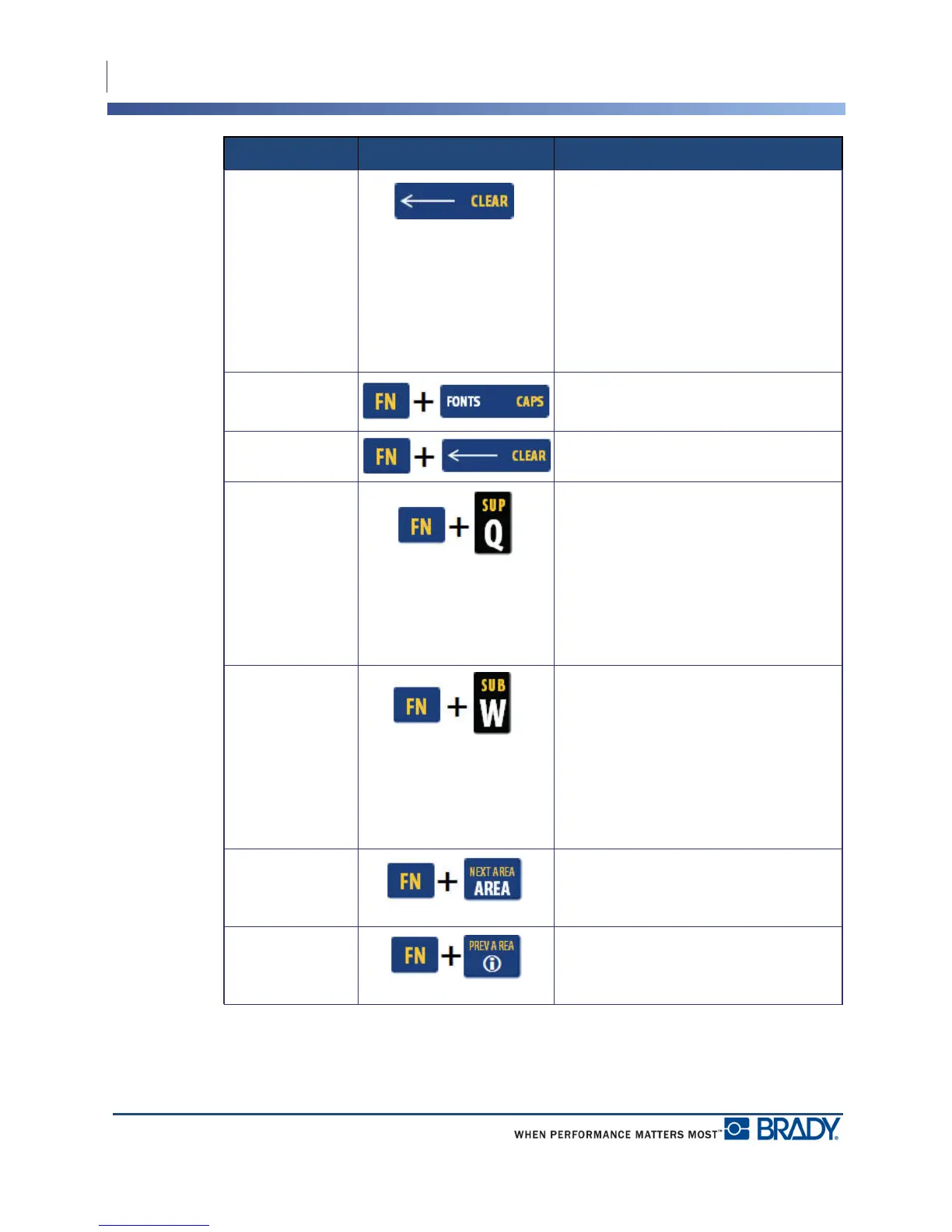 Function Key Description