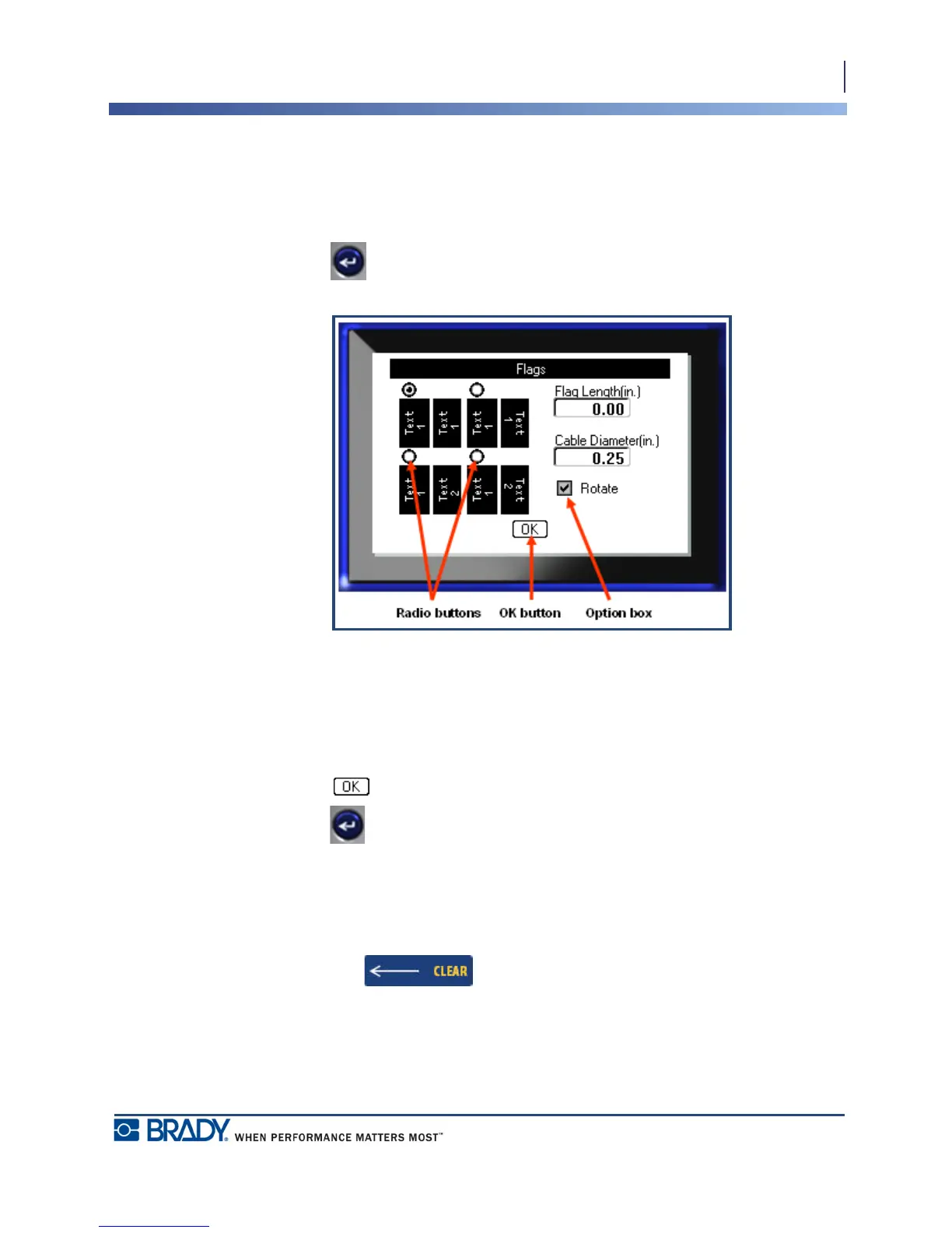 Figure 7 • Radio buttons, Option boxes and OK button