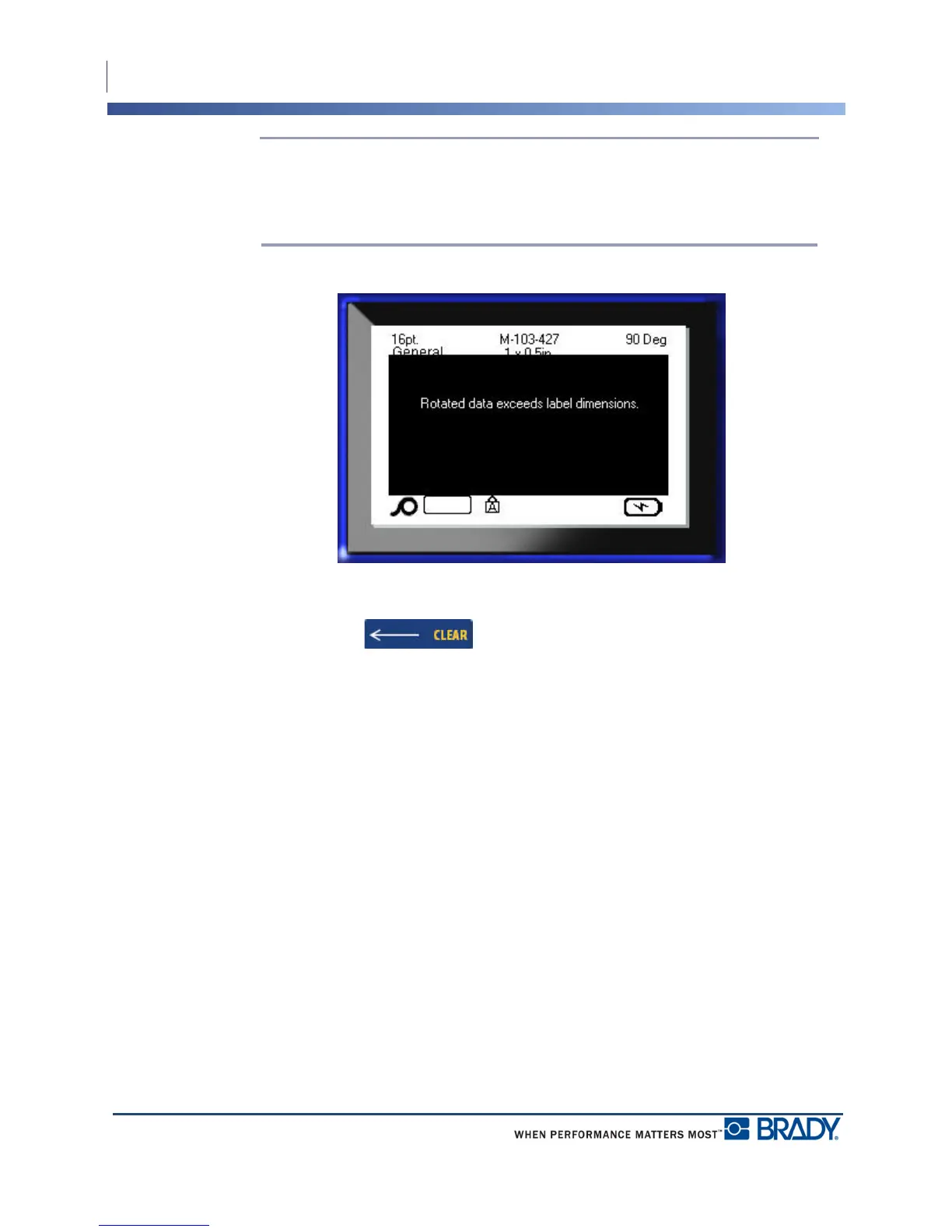 may not fit on the label. If this occurs, an error message displays indicating rotated