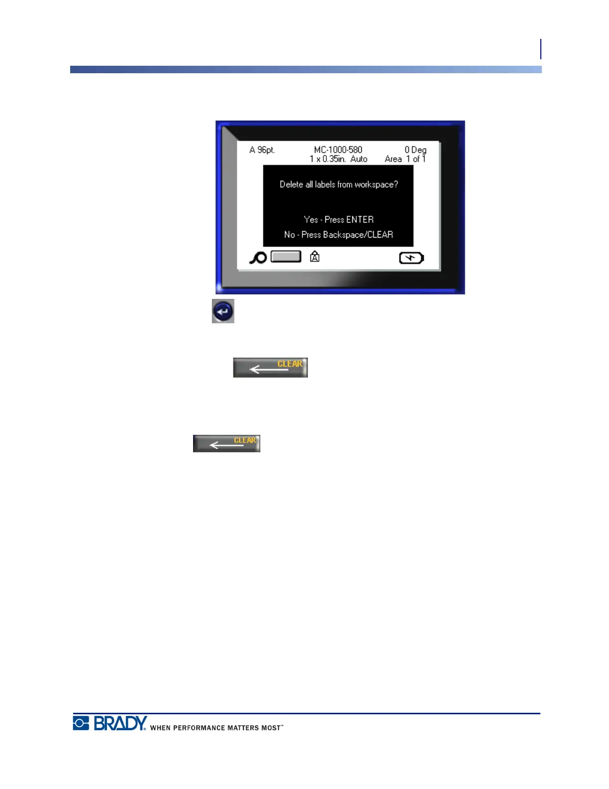 5. Press Backspace to cancel the Clear All function.
