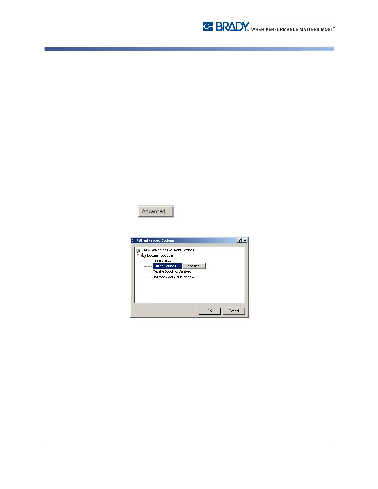4. On the Advanced Options screen, click Properties button for Custom Settings.