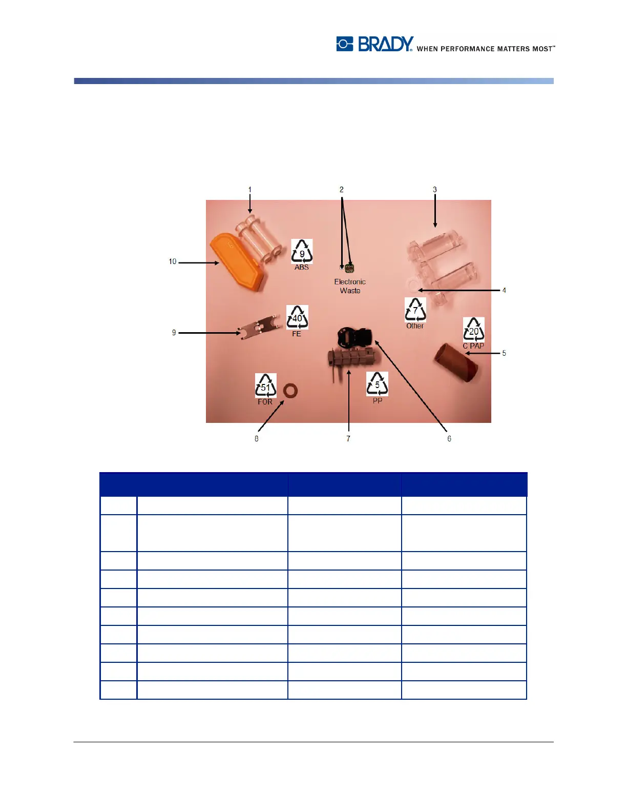 No. Component Material Recycle Bin