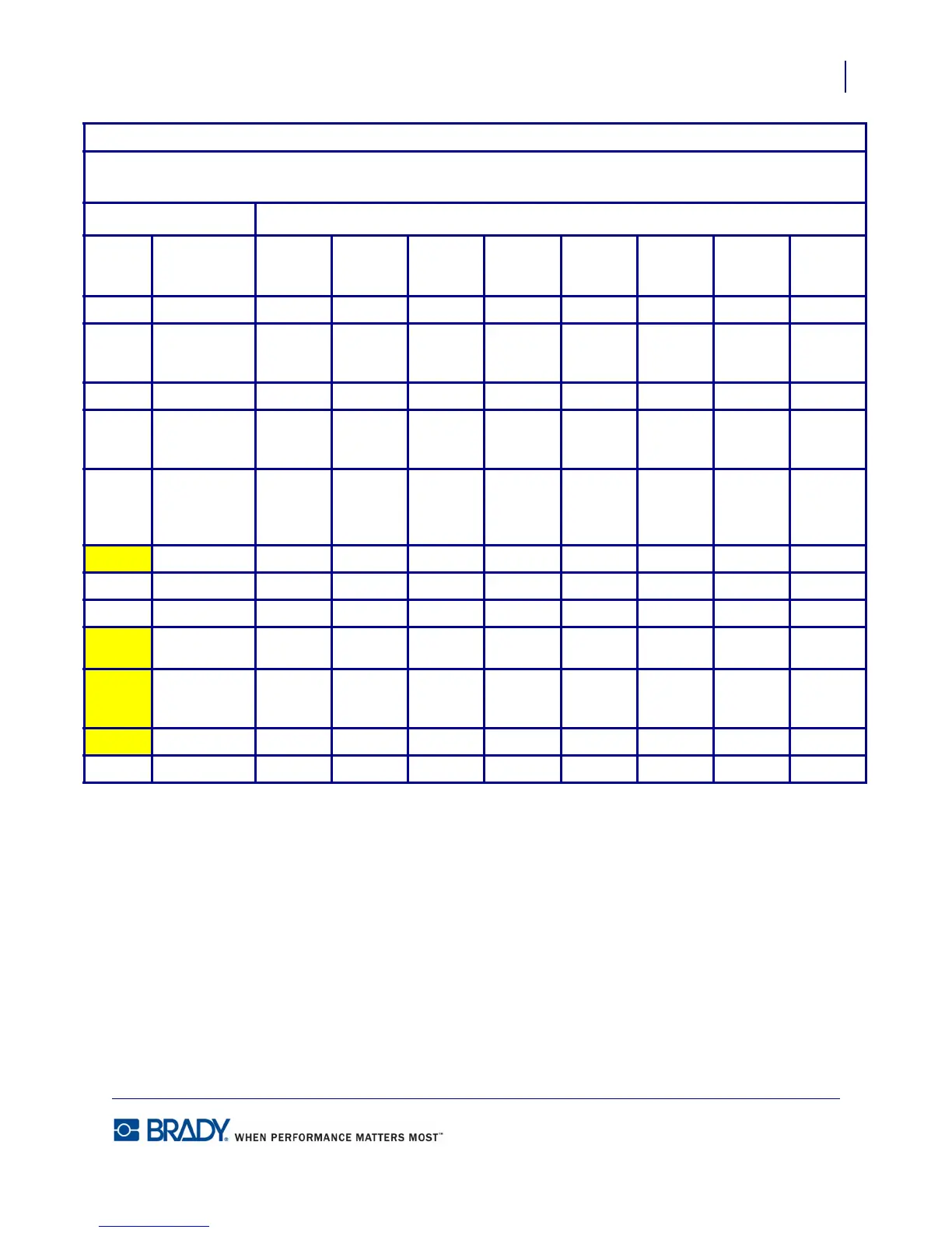 Yellow Highlighting = BMP71 Material ● = Recommended